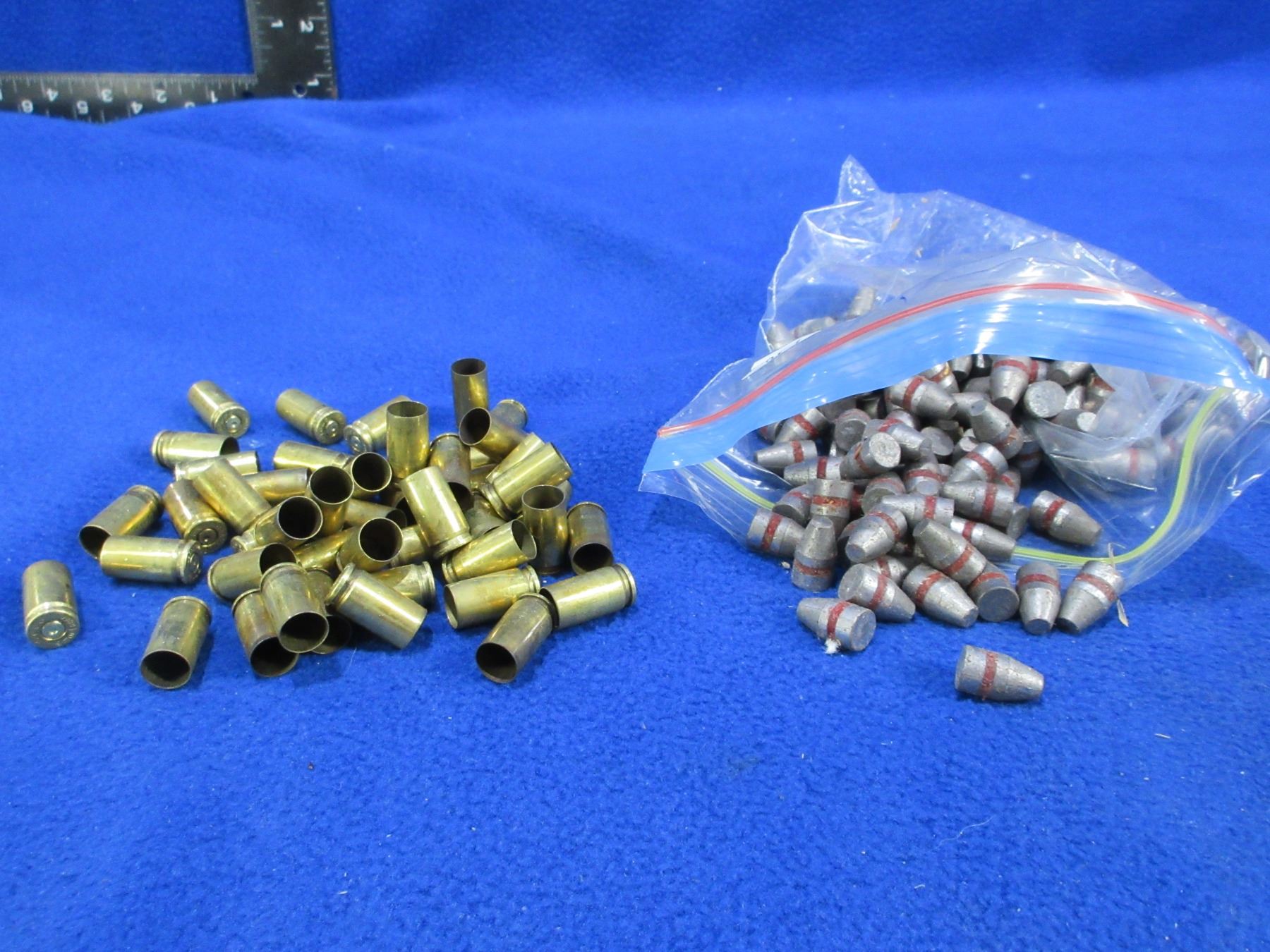 9MM .355" 121gr Swaged Lead SWC Bullets & 9MM Brass - Bag of Approx. 180 (Bullets), Bag of 47 (Unprimed Brass)