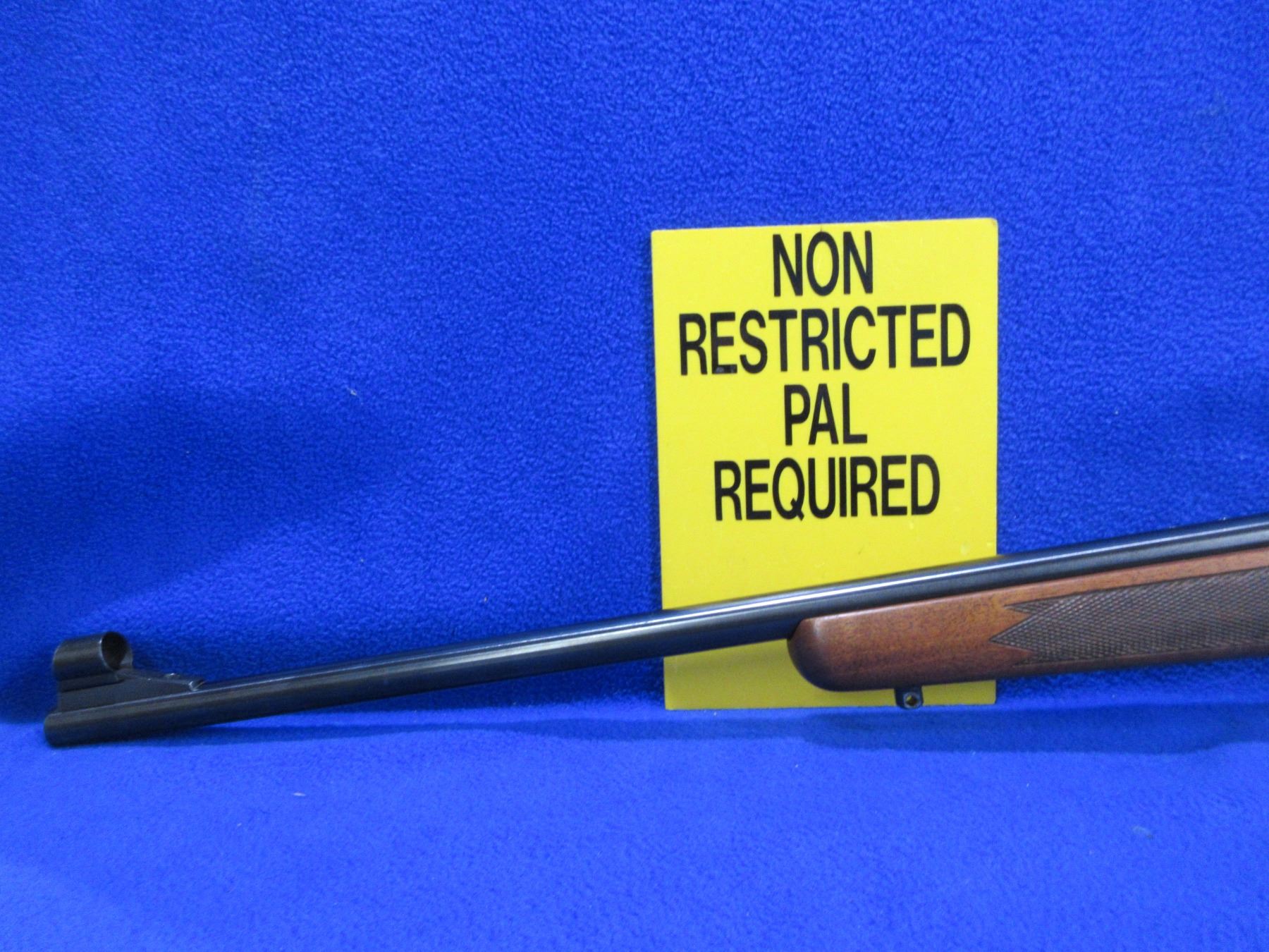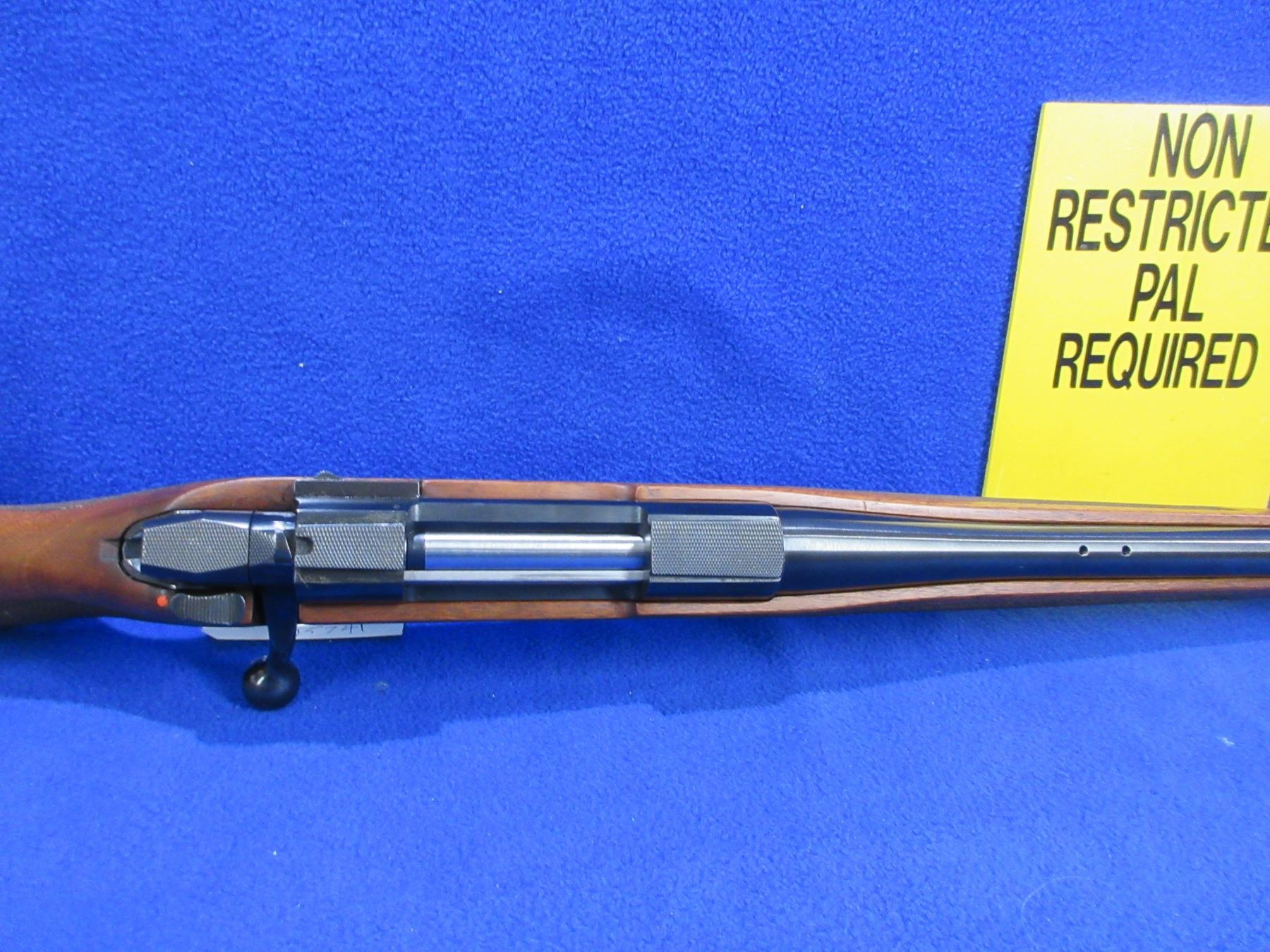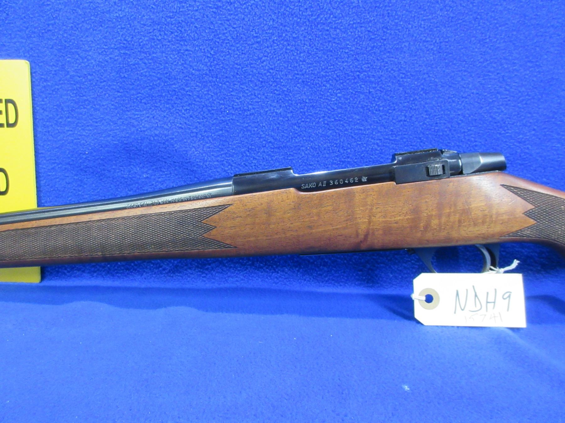 Non-Restricted - Sako Model AII in 243 Win. - This is a bolt action rifle with floor plate magazine, action appears to be in good to very good working order. Barrel is 22 1/2", rifling is good to very good, bluing is good to very good, has front sight, missing the rear sight but has integral Sako dovetails, stock is good to very good, length of pull is 13 3/4", rubber recoul pad good, comes with swivel studs. Ser # 360462