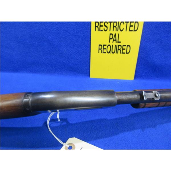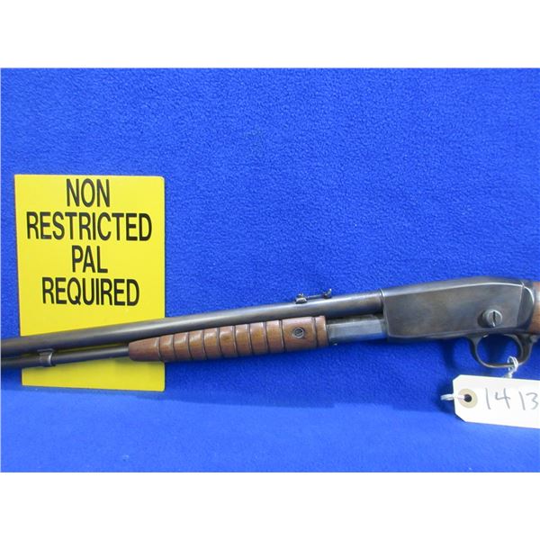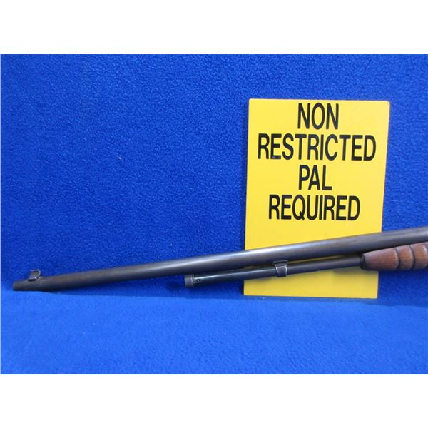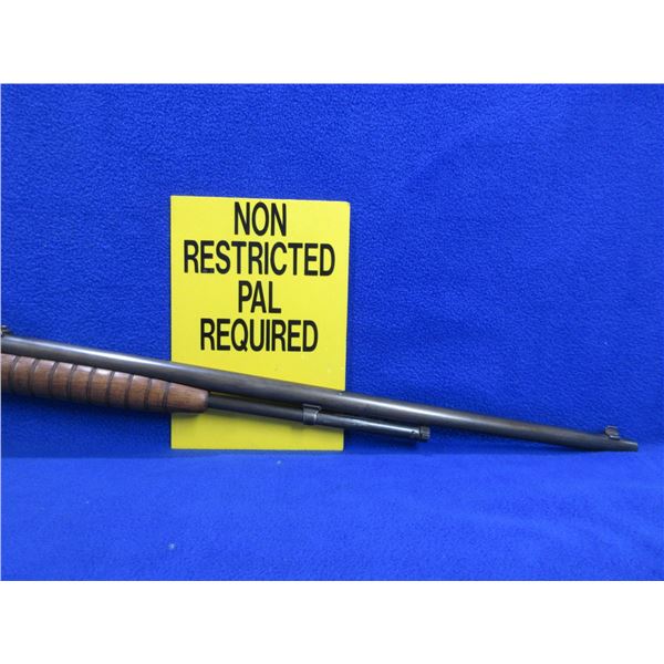 Non-Restricted - Remington Model 12 in 22 LR - This is a pump action takedown rifle with tube magazine, action appears to be in good to very good working order. Barrel is 22", rifling is poor, bluing is mostly grey, has both sights, stock has a hairline crack down the middle in the wrist area on both sides, forearm is good to very good, length of pull is 13", butt plate is non original piece of aluminum. Ser # 165268