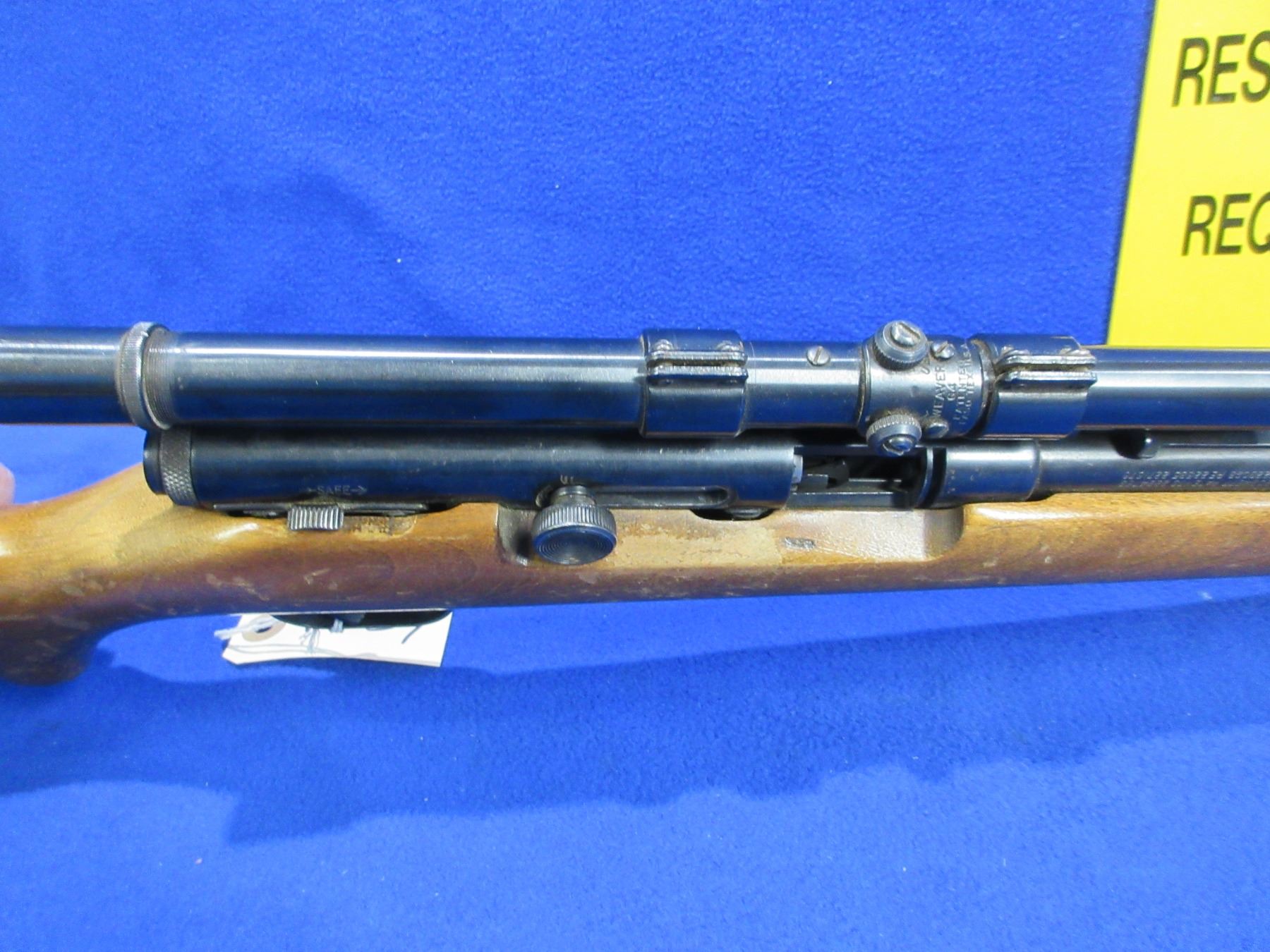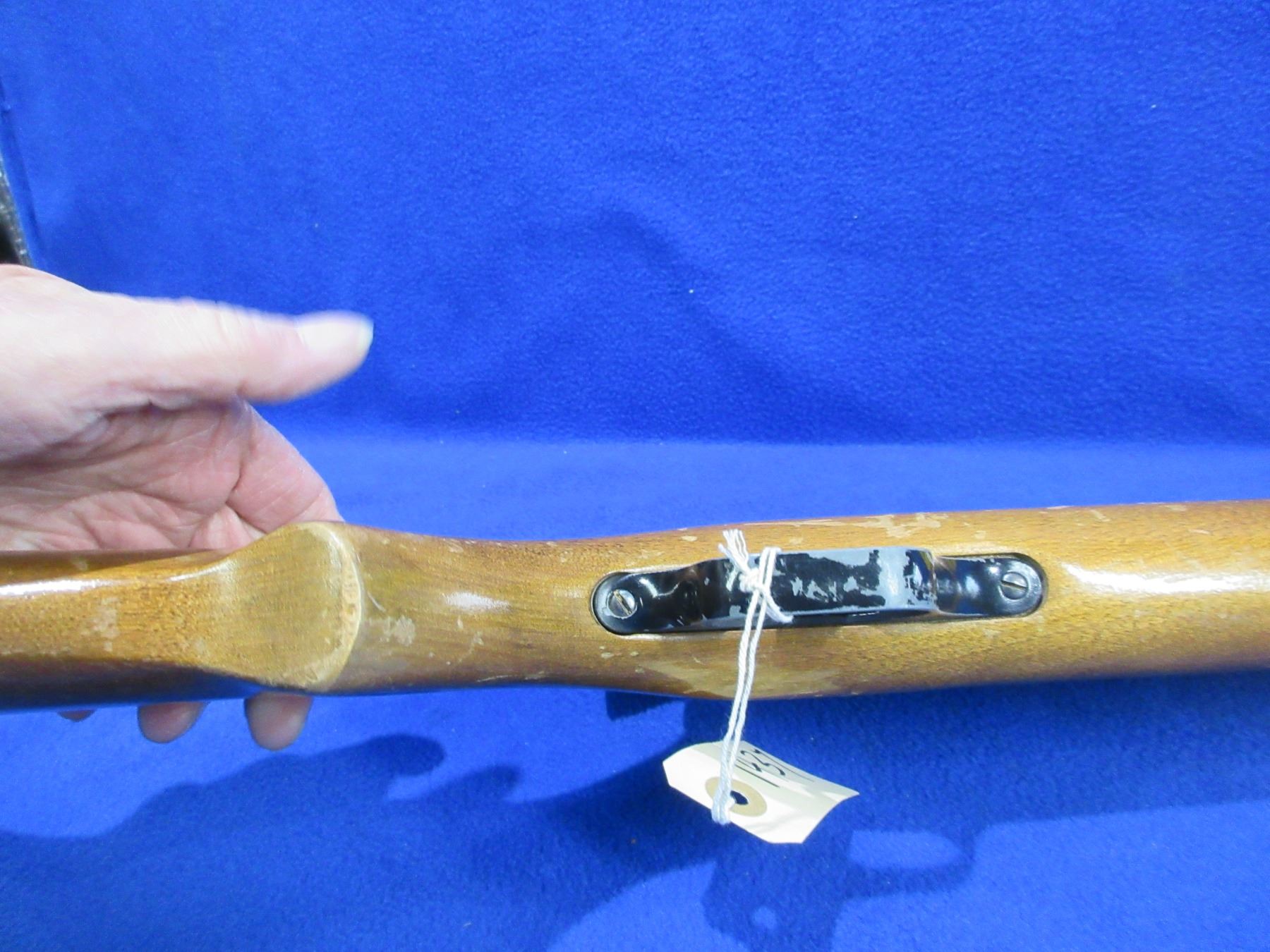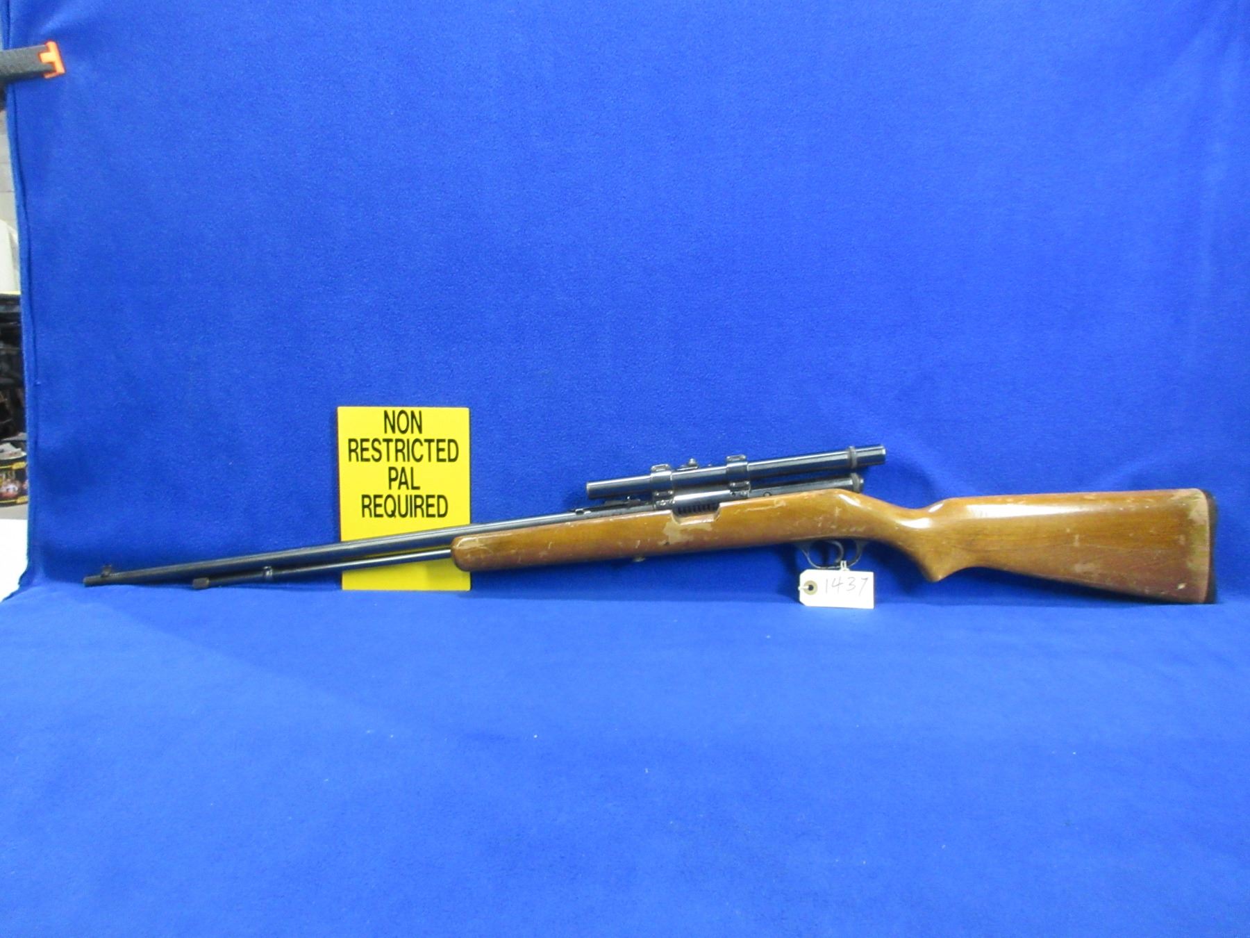 Non-Restricted - Springfield Model 87A in 22 S/L/LR - This is a semi-auto rifle with tube magazine, action appears to be in good to very good working order. Barrel is 24", rifling is good to very good, bluing is good to very good, has both sights and a vintage Weaver G4 Scope - appears clear, standard reticle, stock is good with many usage marks and finish flaking, length of pull is 13 3/4", butt plate incorrect. Ser # None