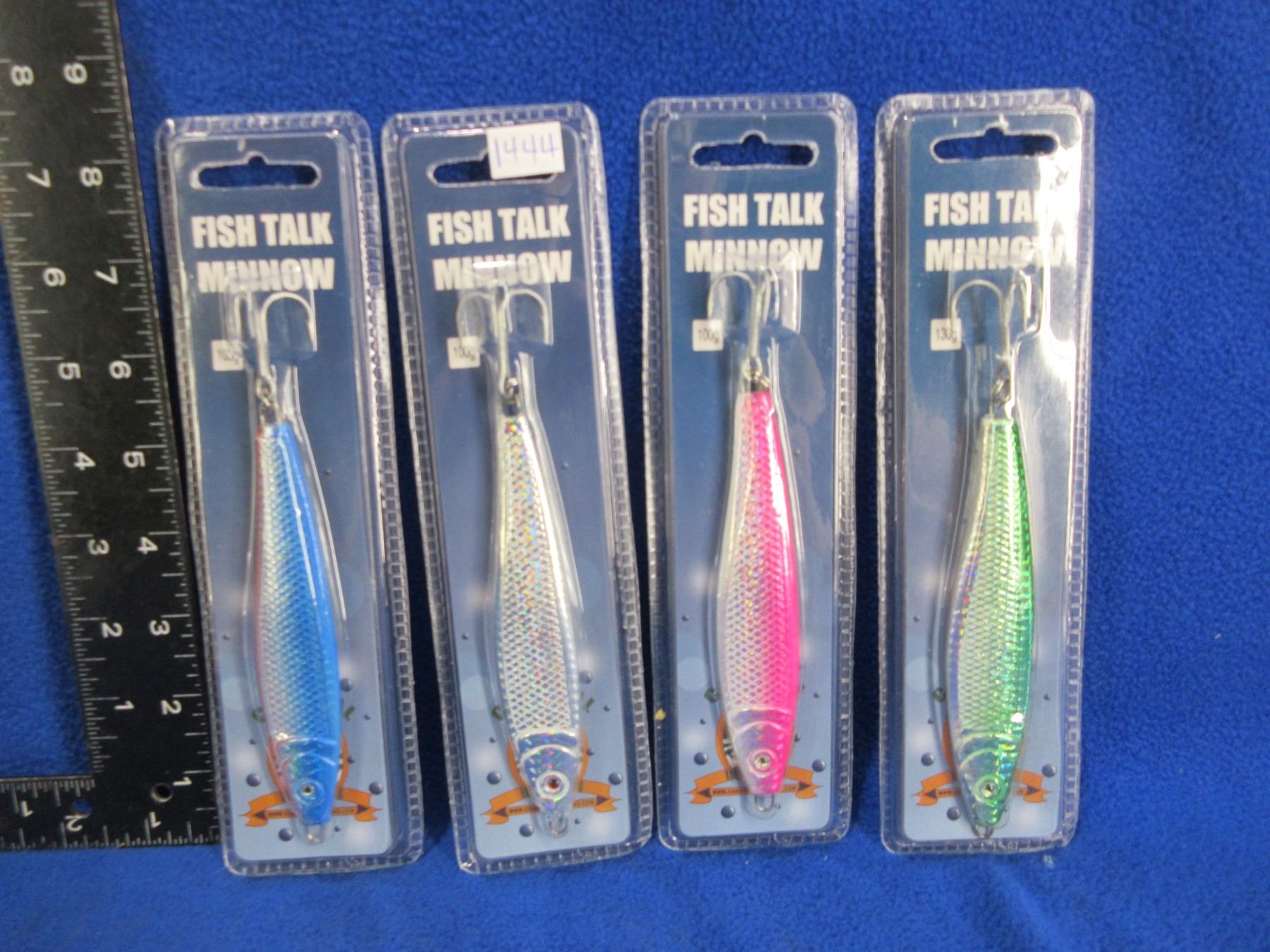 Lot 1444 NEW - 4 Fish Talk Minnow Lures - Assorted Colors, 100g & 130g