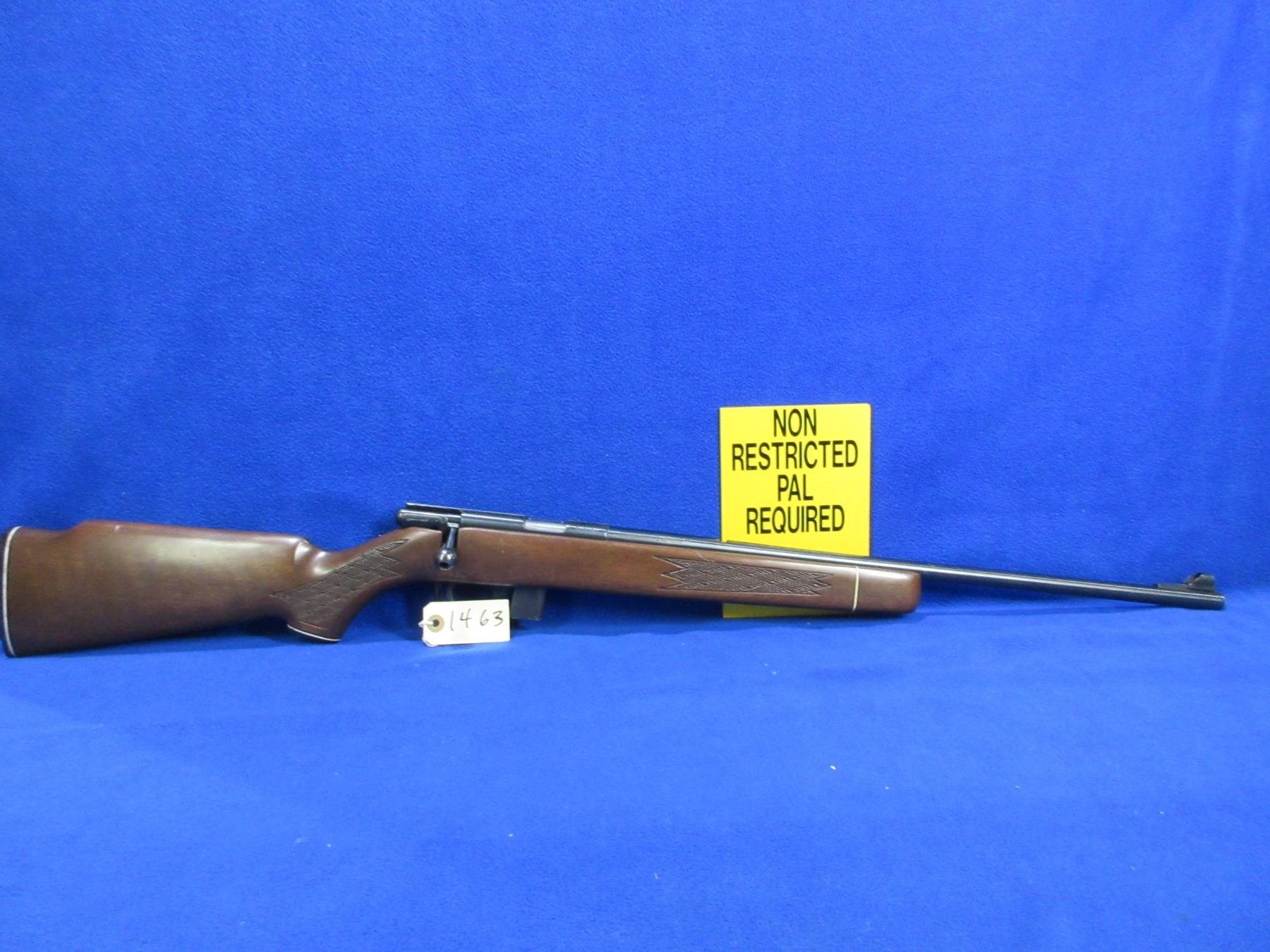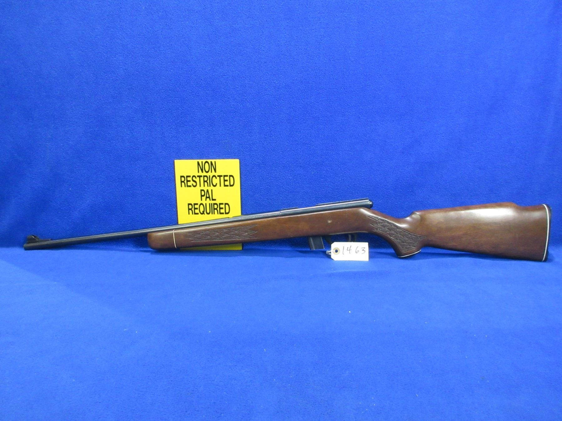 Non-Restricted - Squires Bingham Model 14 in 22 LR - This is a bolt action rifle with removable magazine, action appears to be in good to very good working order. Barrel is 22 3/4", rifling is good to very good, bluing is good to very good, has front sight, missing the rear sight but has integral .22 rail, stock is good to very good with usage marks, length of pull is 14 1/4", butt plate good. Ser # 742104