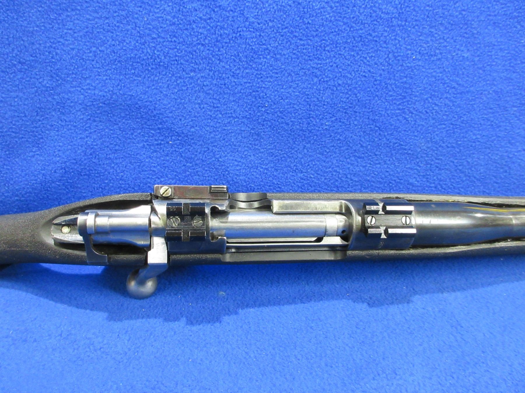 Non-Restricted - Husqvarna in 7X57 Mauser - This is a bolt action rifle with internal magazine, action appears to be in good to very good working order. Barrel is 24 1/2", rifling is good to very good, bluing is good, has no sights but has Weaver style bases, synthetic stock is good to very good, length of pull is 13 1/4", rubber recoil pad good, comes with swivel studs. Ser # 621756