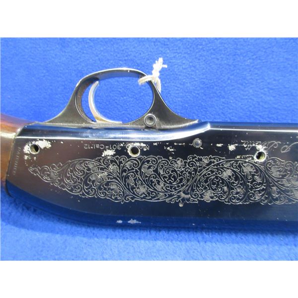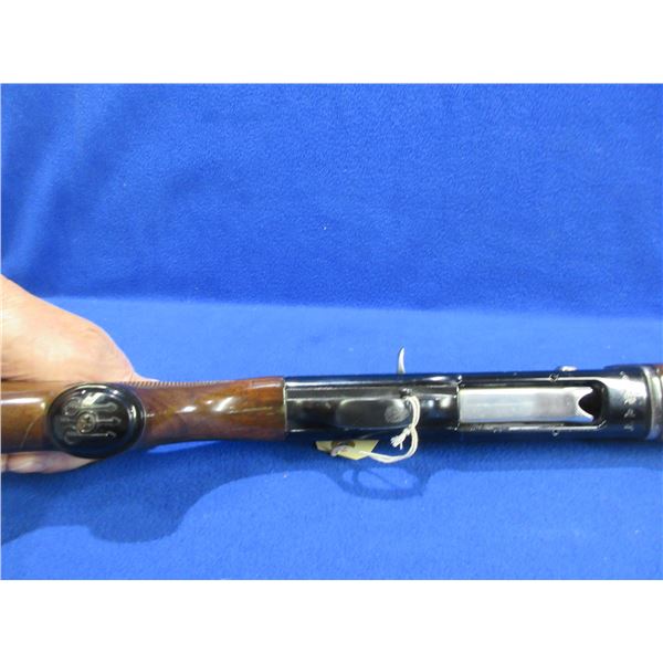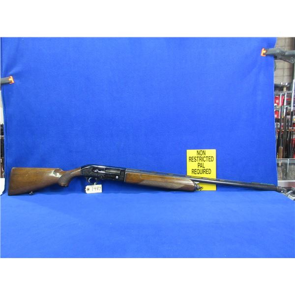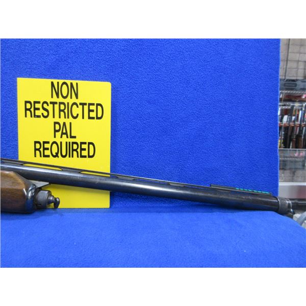 Non-Restricted - Beretta Model A301 in 12 Ga. 2 3/4" - This is a semi-auto shotgun, action appears to be in good working order but has 3 drilled and tapped holes on left side. Barrel is 28", bore is good to very good, bluing is fair to good, has fiber optic front sight, stock is good, forearm is good to very good with usage marks, length of pull is 14", butt plate missing. Ser # D14663E