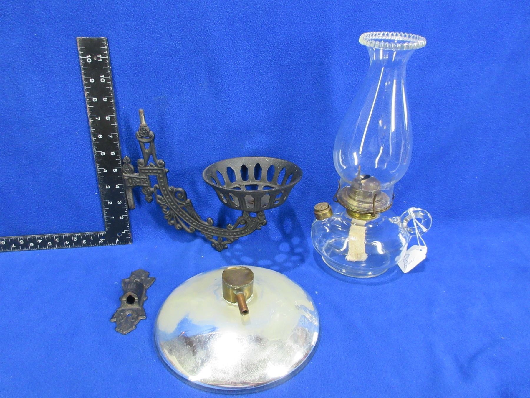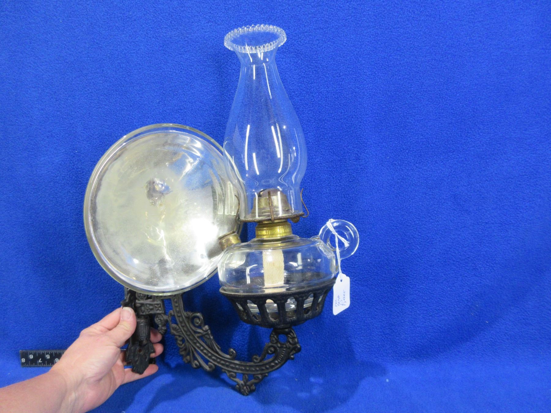 Lot 1488 Vintage Wall Mounted Finger Lamp w/ Back Light Reflector & Cast Iron Bracket