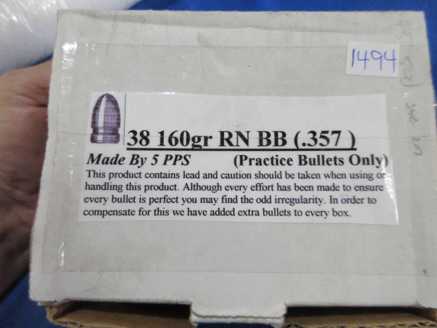 Lot 1494 38 Cal. .357" 160gr RN BB Bullets - Box of 500 - Made by PPS