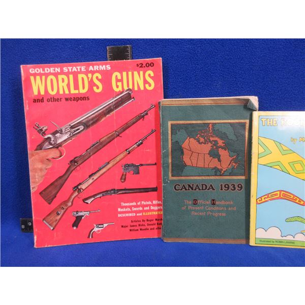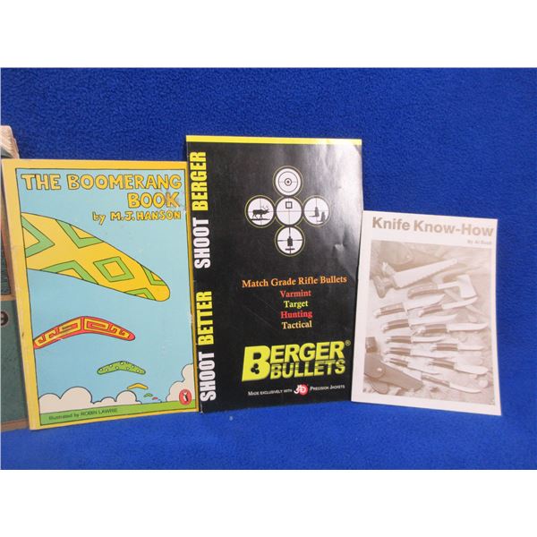 3 Books & 2 Pamphlets - The Boomerang Book, Canada 1939, Golden State Arms World's Guns, Knife Know How, Berger Bullets