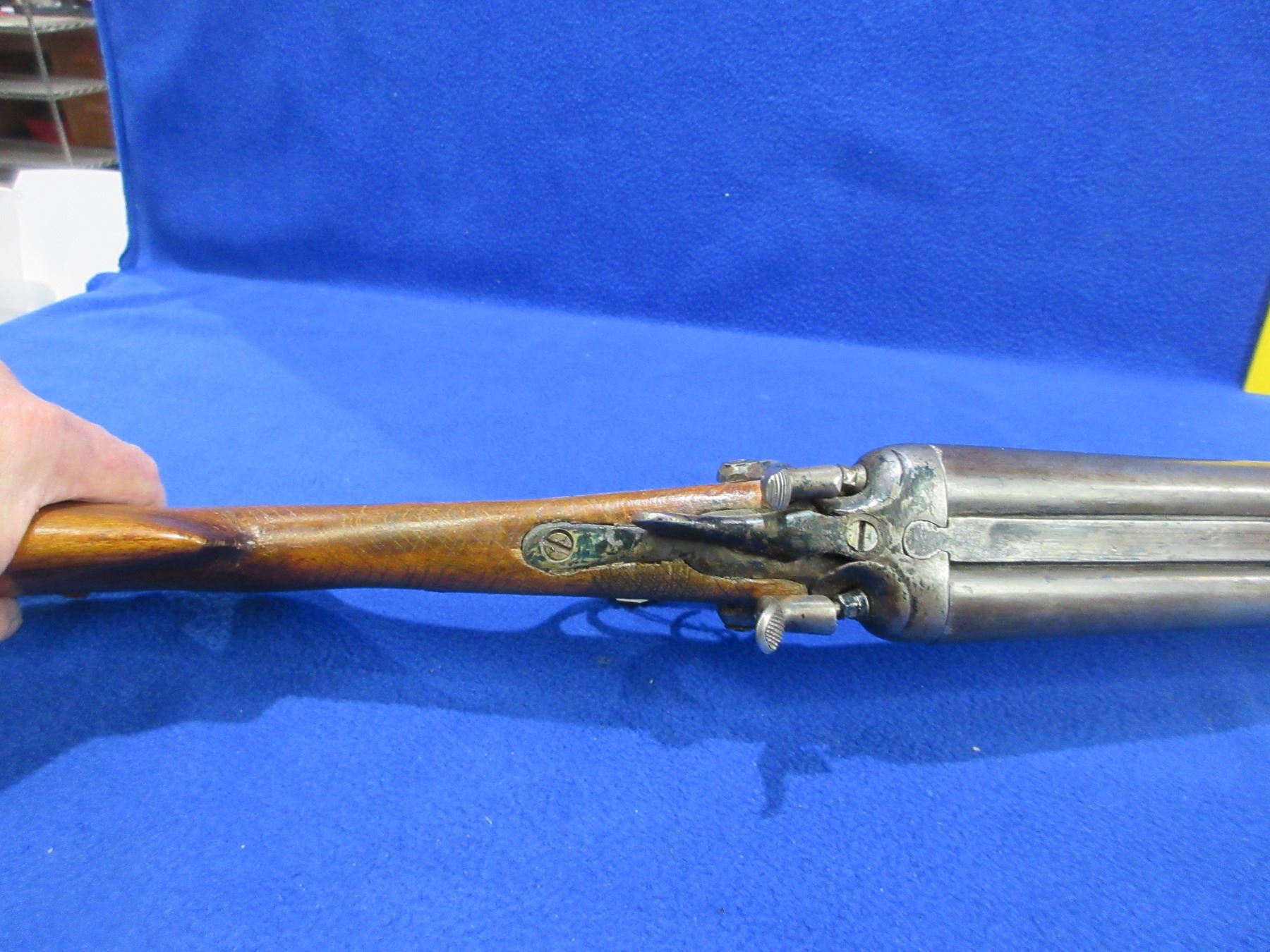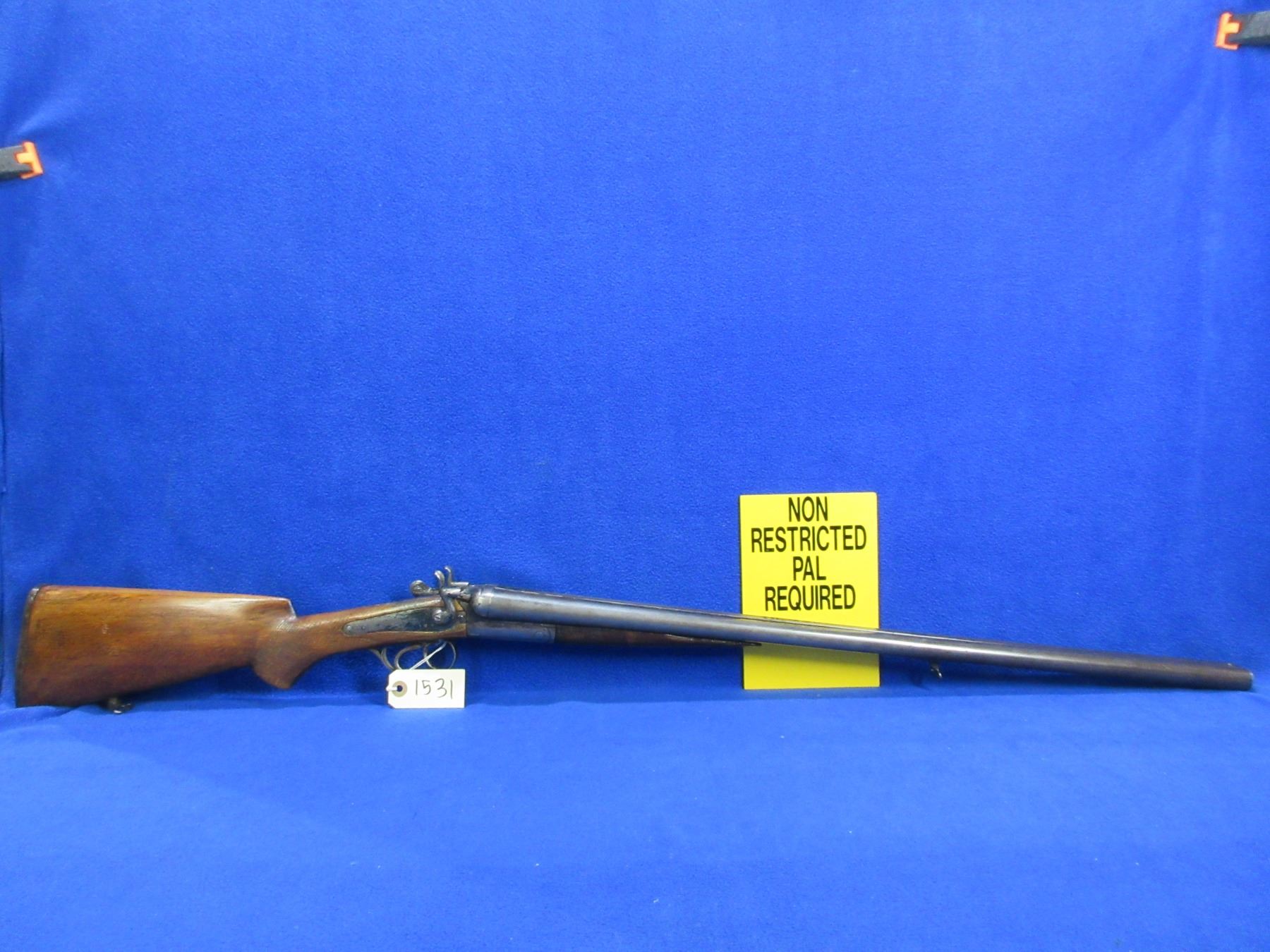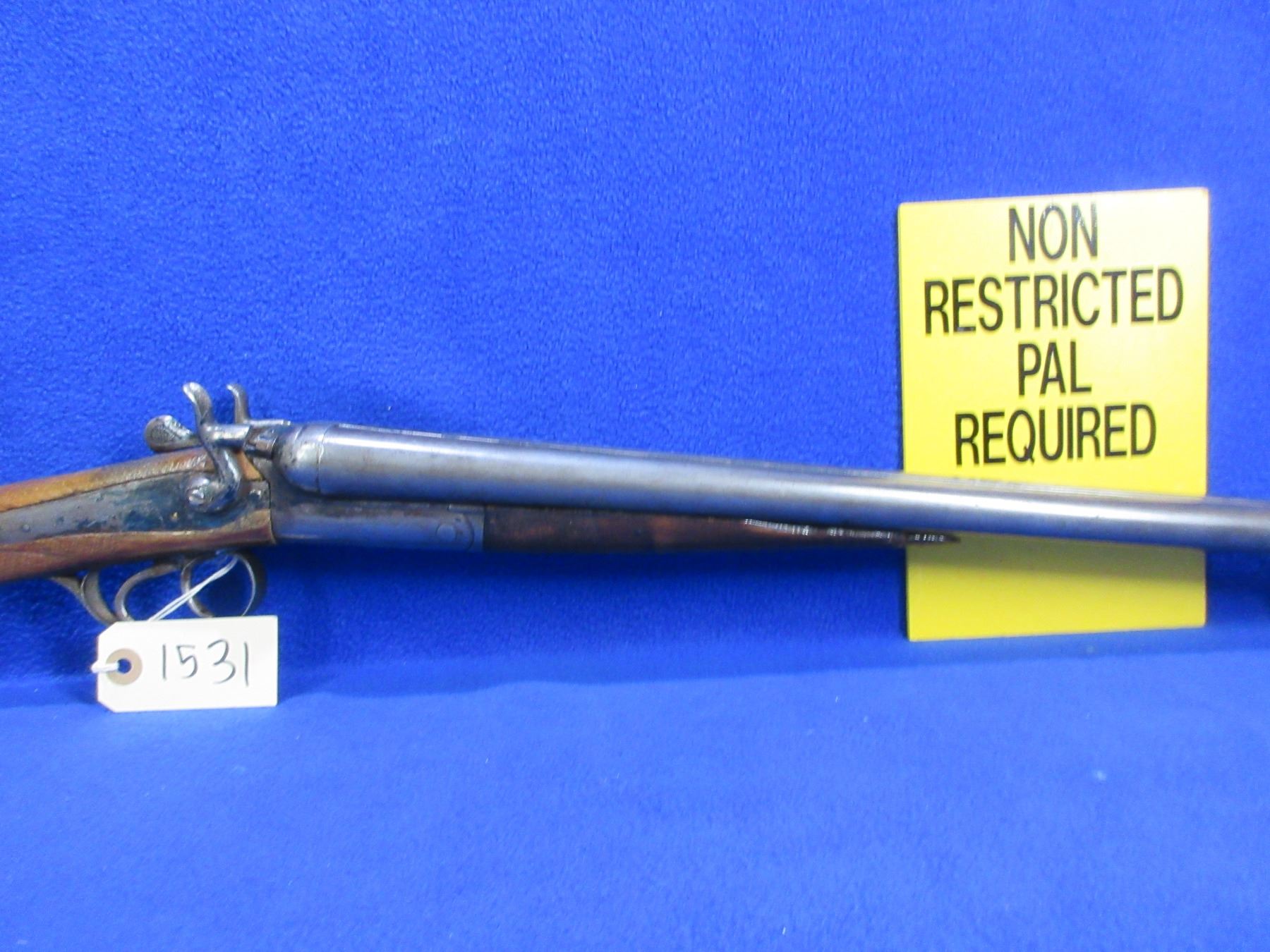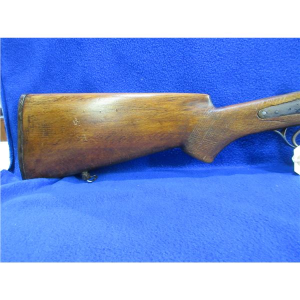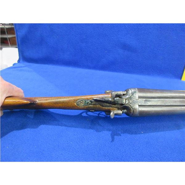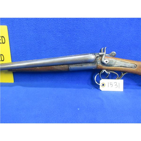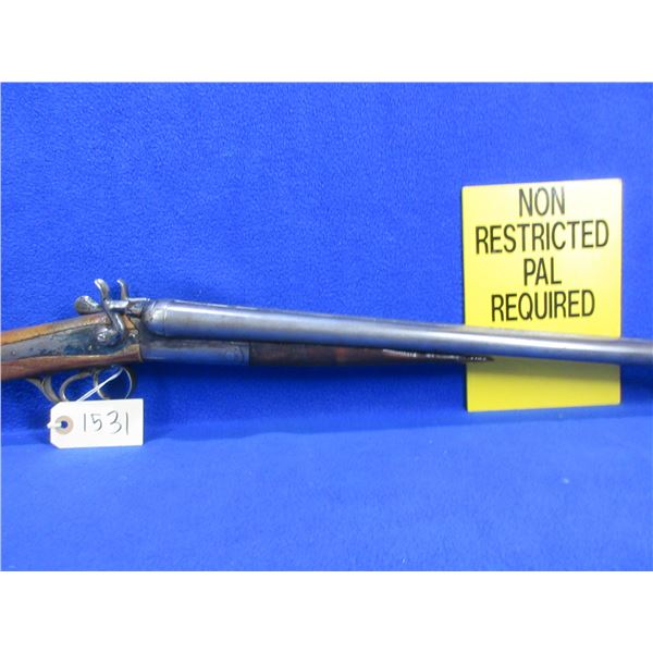 Non-Restricted - Belgian SXS in 12 Ga. 2 1/2" - This is a tip up SXS shotgun, action is a bit loose and appears to be in working order but left hammer is incorrect and missing the screw. Barrels are 27 1/2", bores are fair, bluing is mostly grey or gone, has bead front sight, stock is fair, forearm is fair, length of pull is 14 1/2", butt plate incorrect. Ser # 2CH66