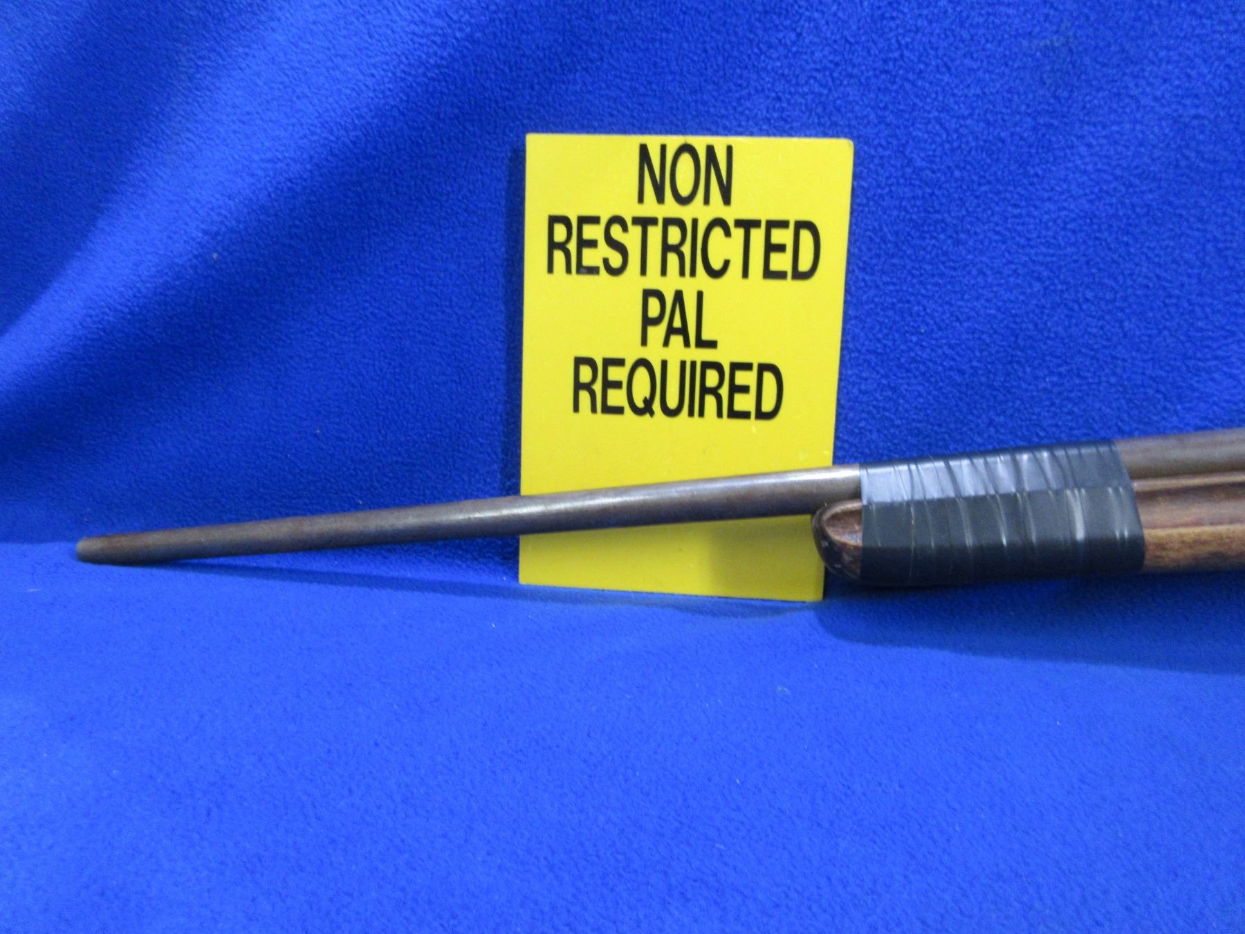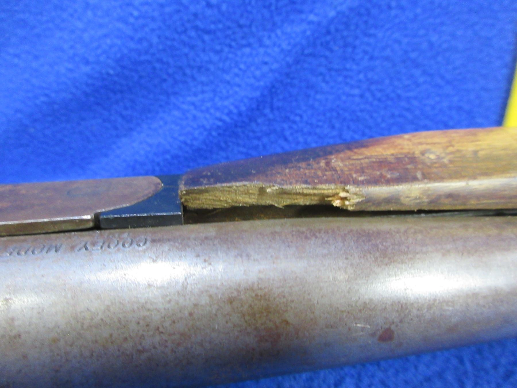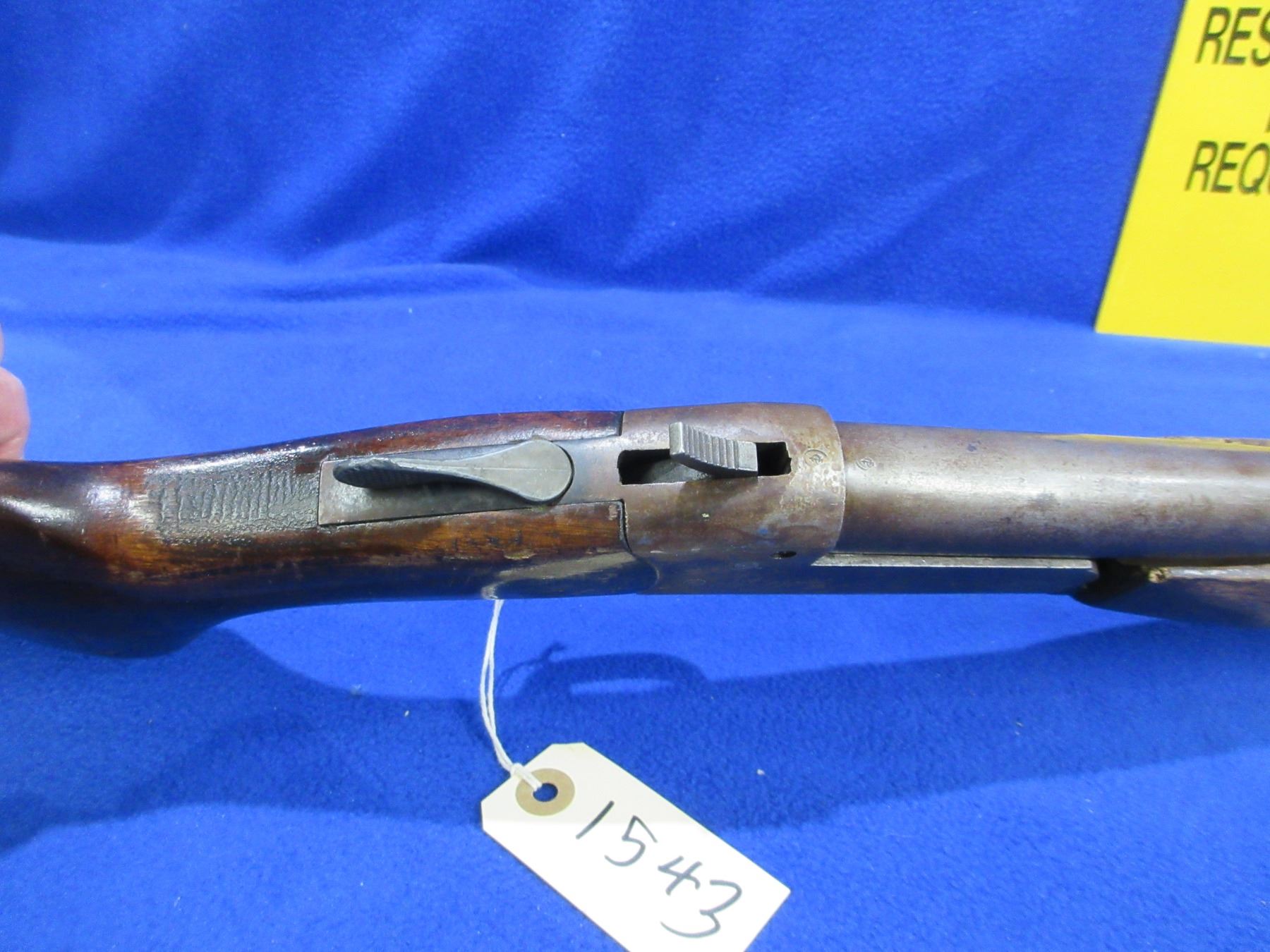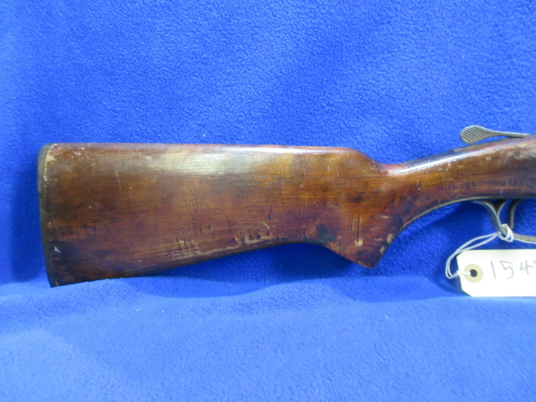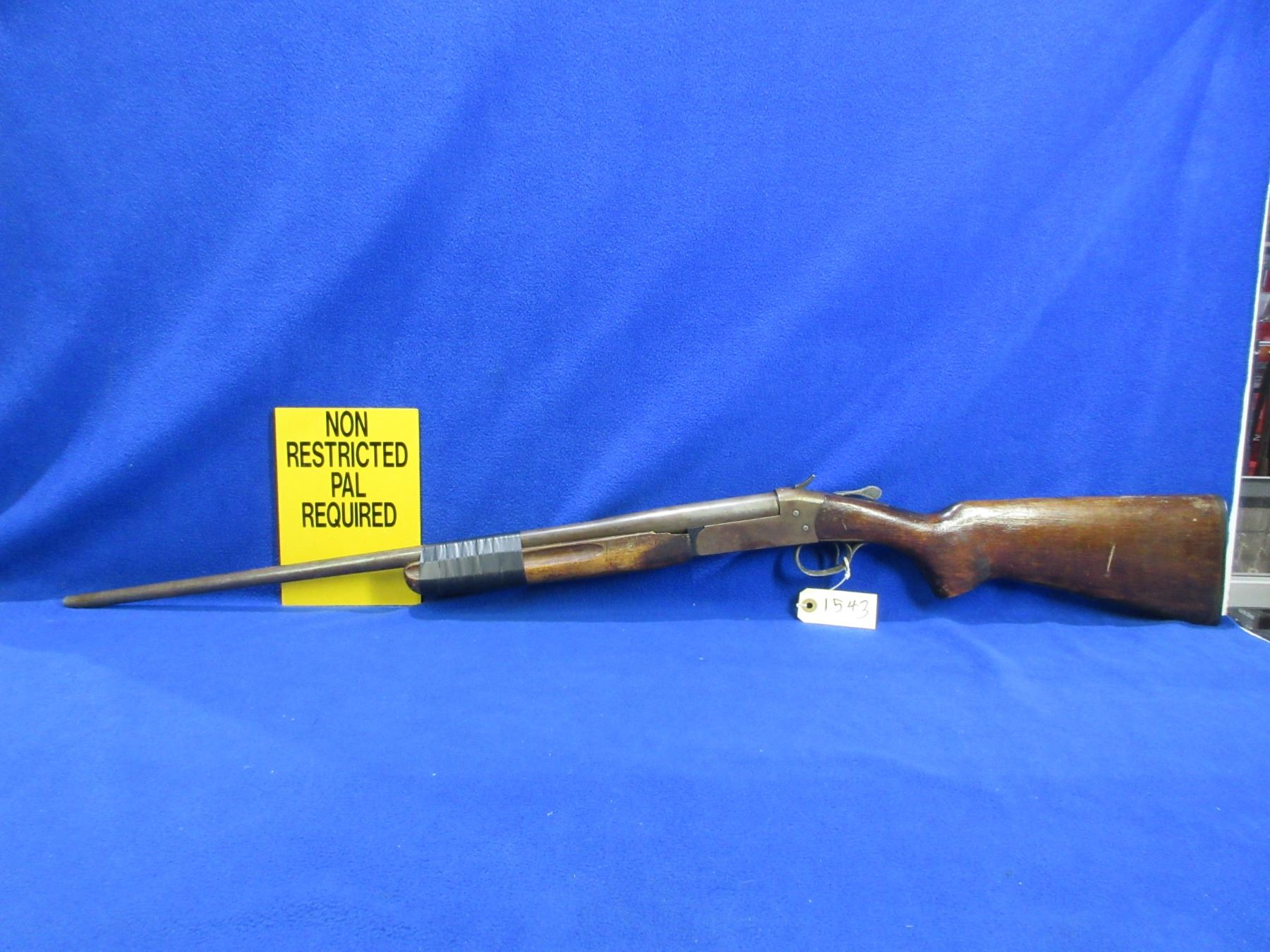 Non-Restricted - Cooey Model 840 in 410 Ga. 2 1/2" & 3" - This is a tip up single shot shotgun, action is tight and appears to be in good working order but the forearm is taped on and the spacer is broken. Barrel is 26", bore is good to very good, bluing is gone, has no sight, stock is good with many usage marks, forearm is good with many usage marks and is taped to barrel, length of pull is 14", butt plate is good. Ser # 902796