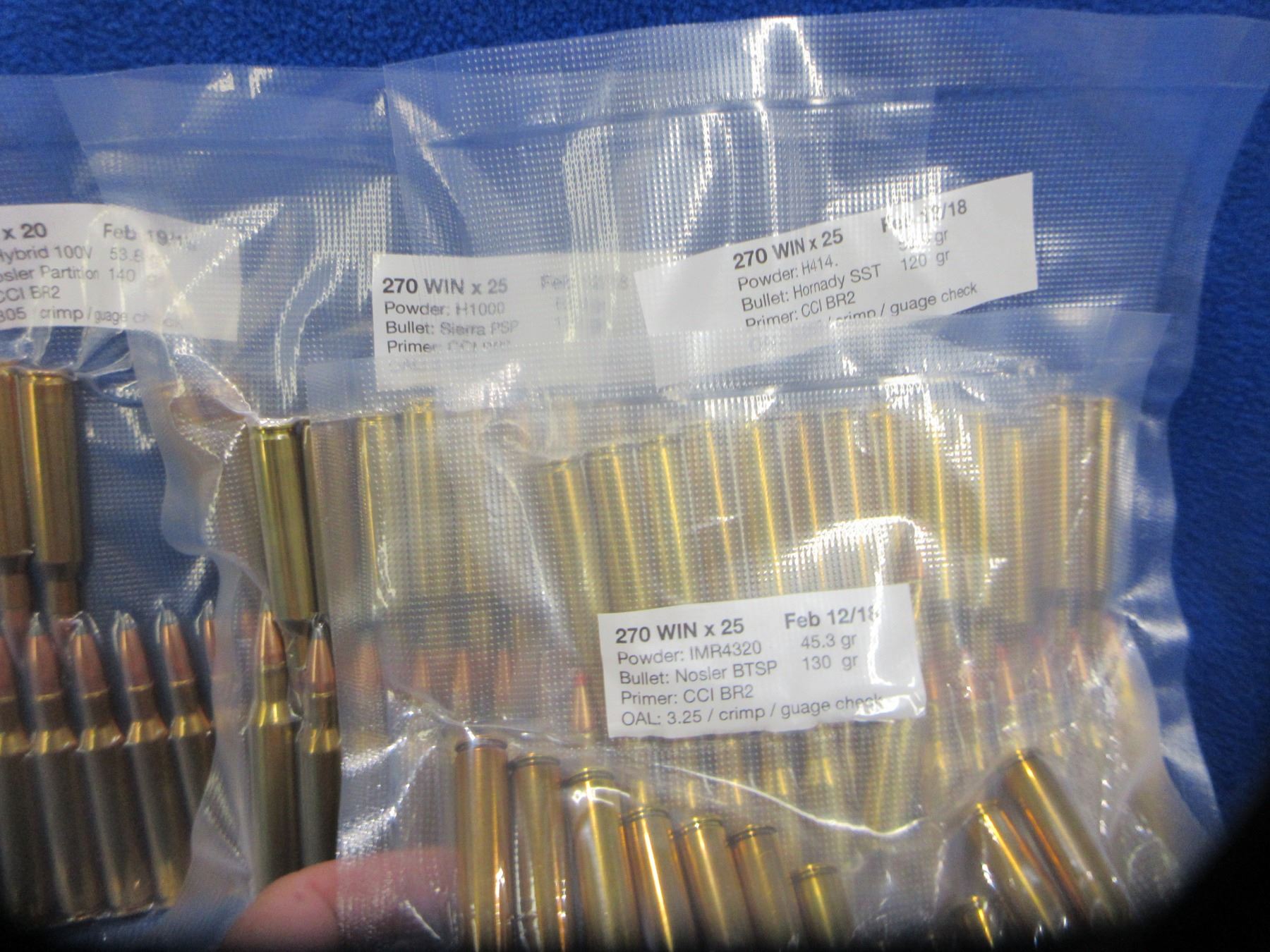 270 Win. Reloads (Pick Up or Ship by UPS Only) - 3 Bags of 25, 2 Bags of 20 - Sold as Components