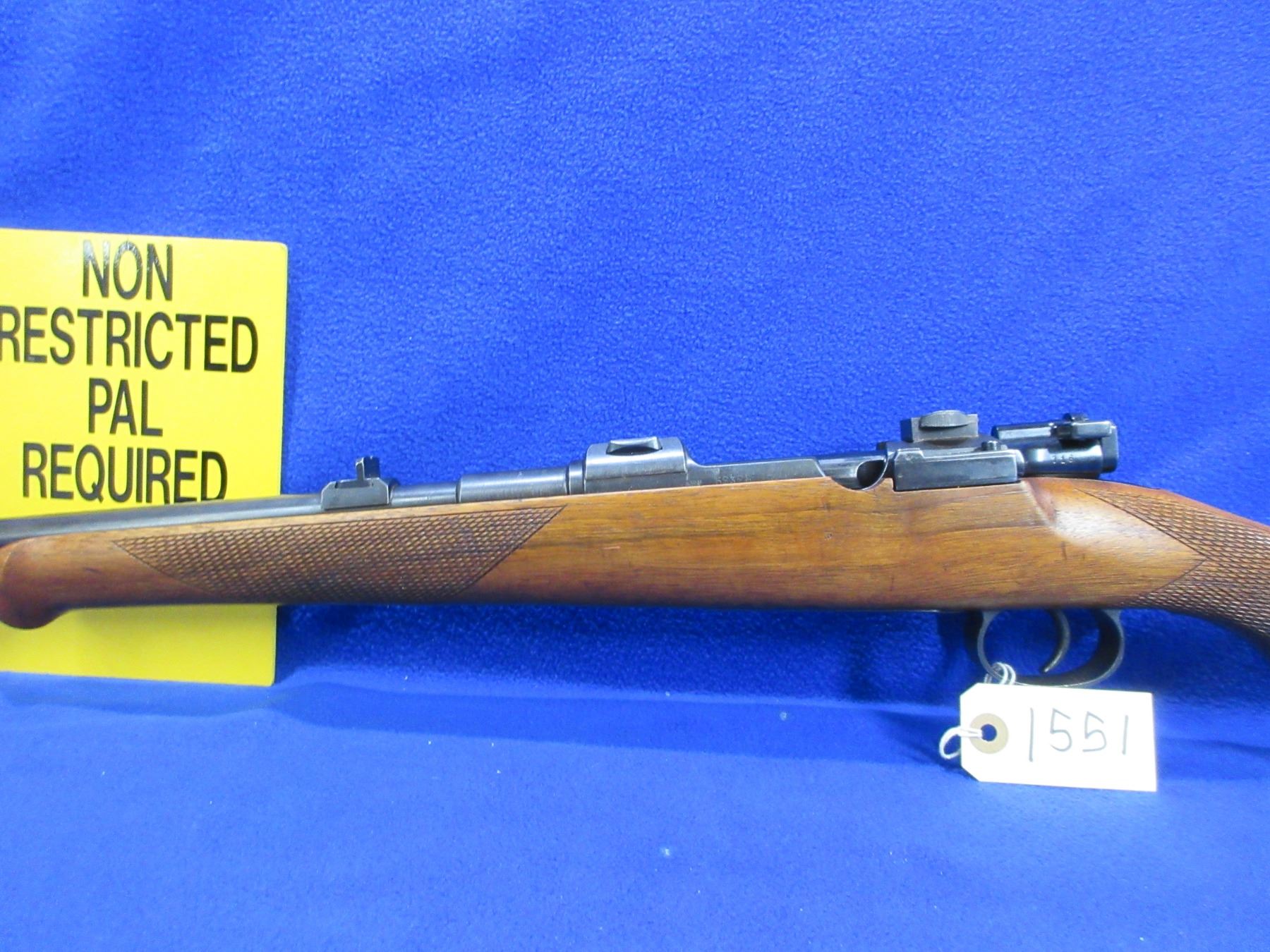 Non-Restricted - Carl Gustaf M96 in 7.62x63/30-06 Sprg (barrel is stamped 7.62x63) - This is a bolt action rifle with floor plate magazine, action appears to be in good to very good working order. Barrel is 26", rifling is good to very good, bluing is good to very good, has both sights and has German claw mount bases, stock is good to very good, length of pull is 14 1/2", butt plate good, comes with swivels. Ser # 52328