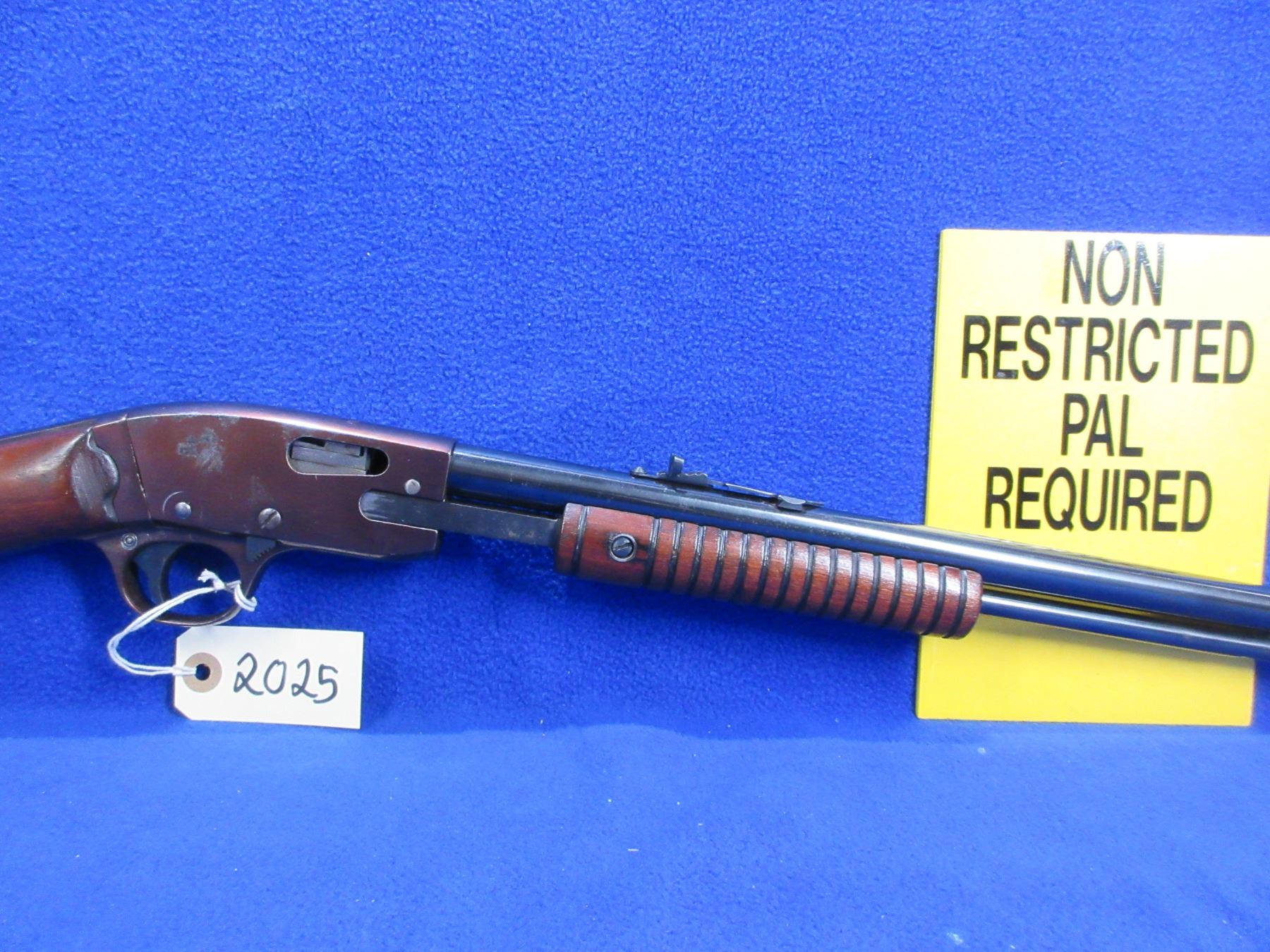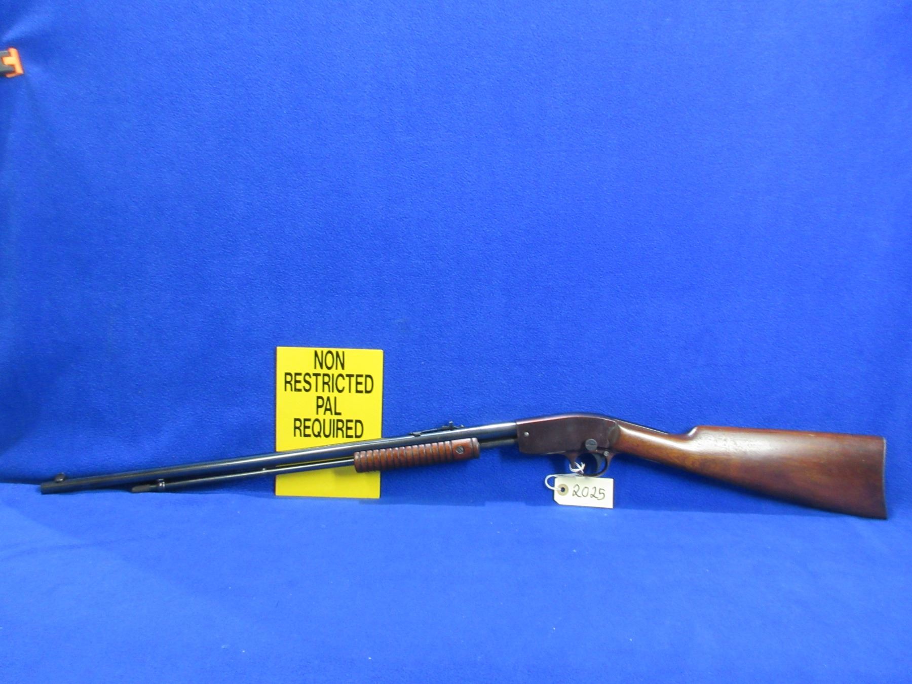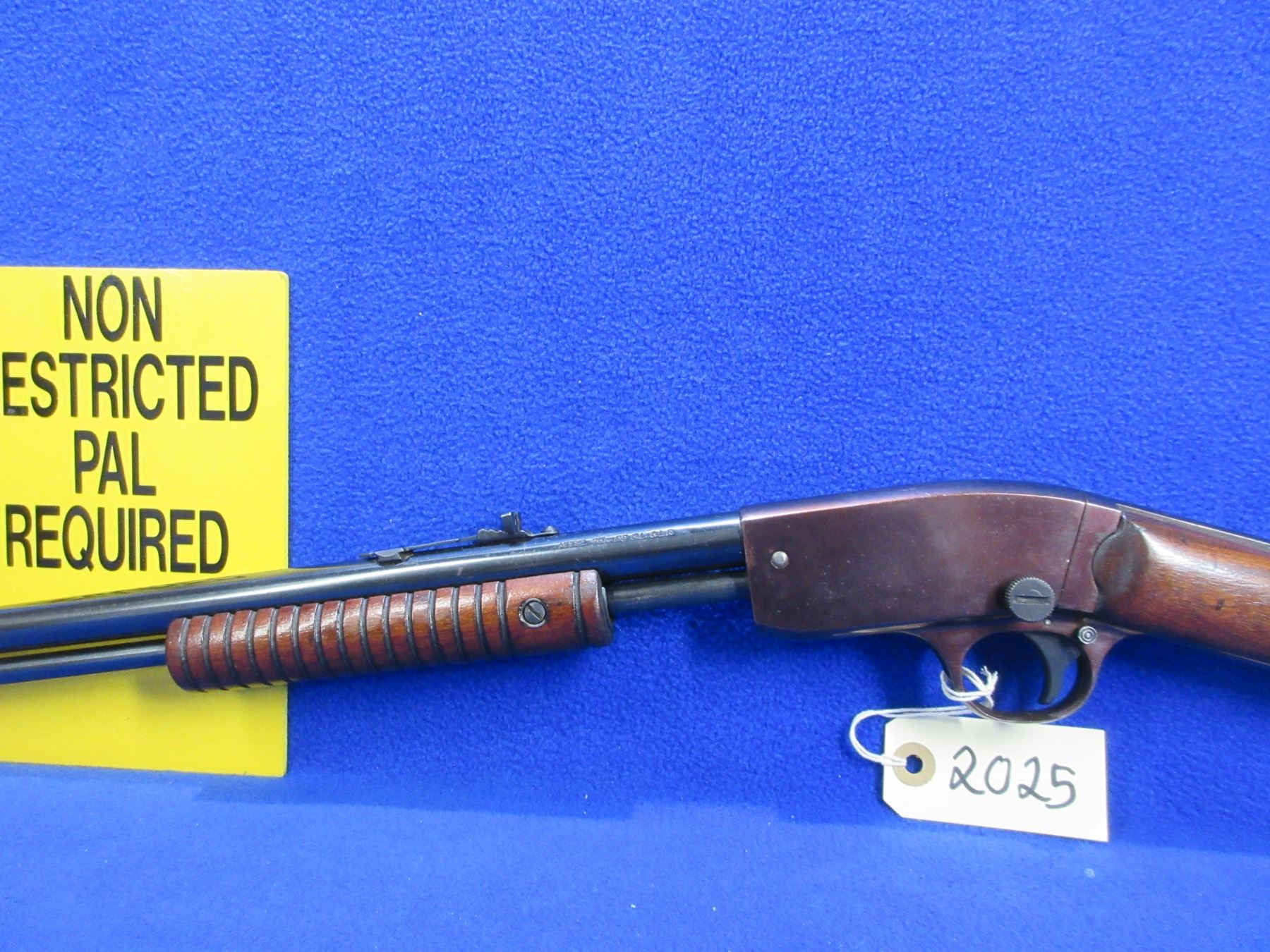 Non-Restricted - Stevens Model 75 in 22 LR - This is a pump action takedown rifle with tube magazine, action appears to be in good to very good working order. Barrel is 24", rifling is good to very good, bluing is good to very good, has both sights, stock is good with small hairline cracks at ends of upper and lower tang, forearm is good to very good, length of pull is 13 1/2", metal butt plate good. Ser # 1560