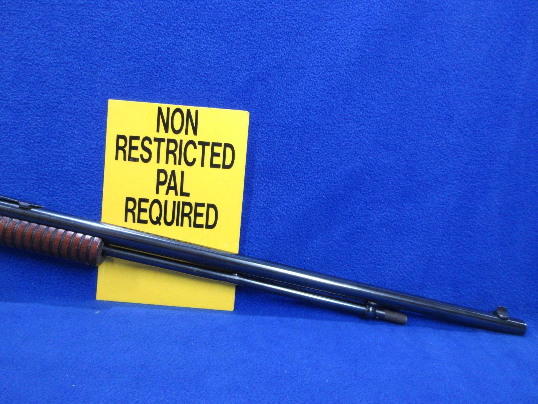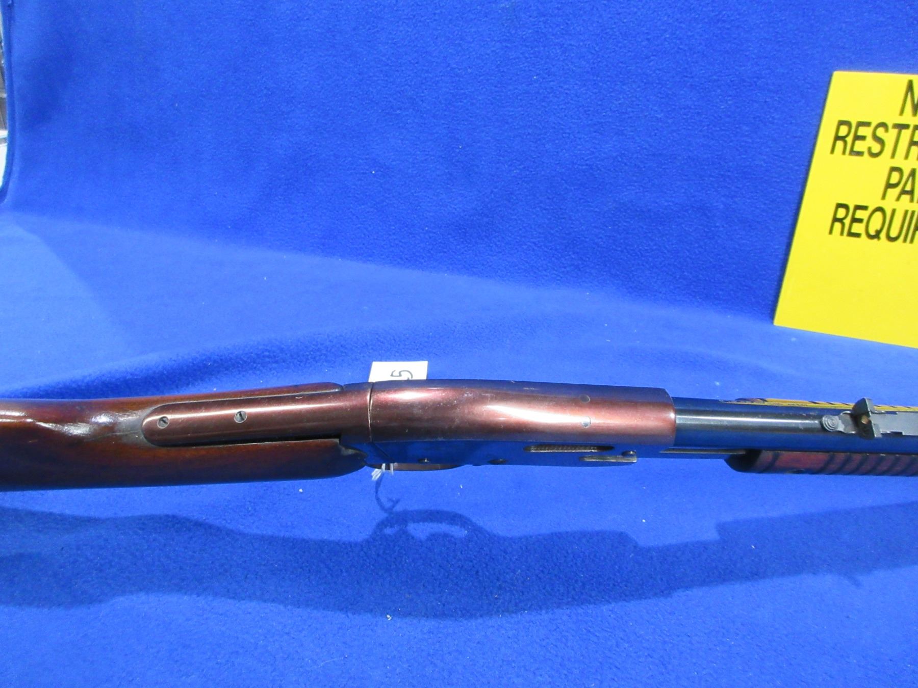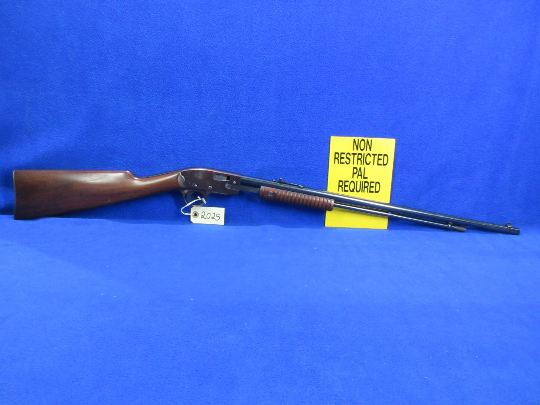 Non-Restricted - Stevens Model 75 in 22 LR - This is a pump action takedown rifle with tube magazine, action appears to be in good to very good working order. Barrel is 24", rifling is good to very good, bluing is good to very good, has both sights, stock is good with small hairline cracks at ends of upper and lower tang, forearm is good to very good, length of pull is 13 1/2", metal butt plate good. Ser # 1560