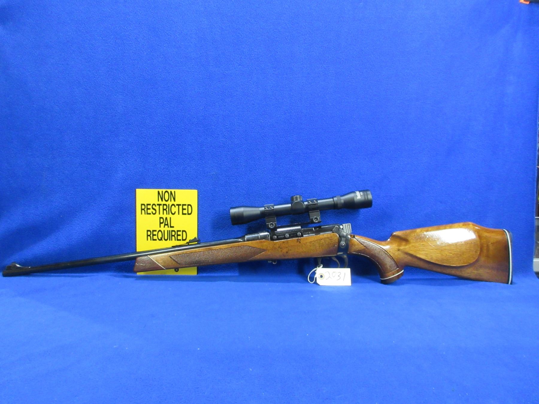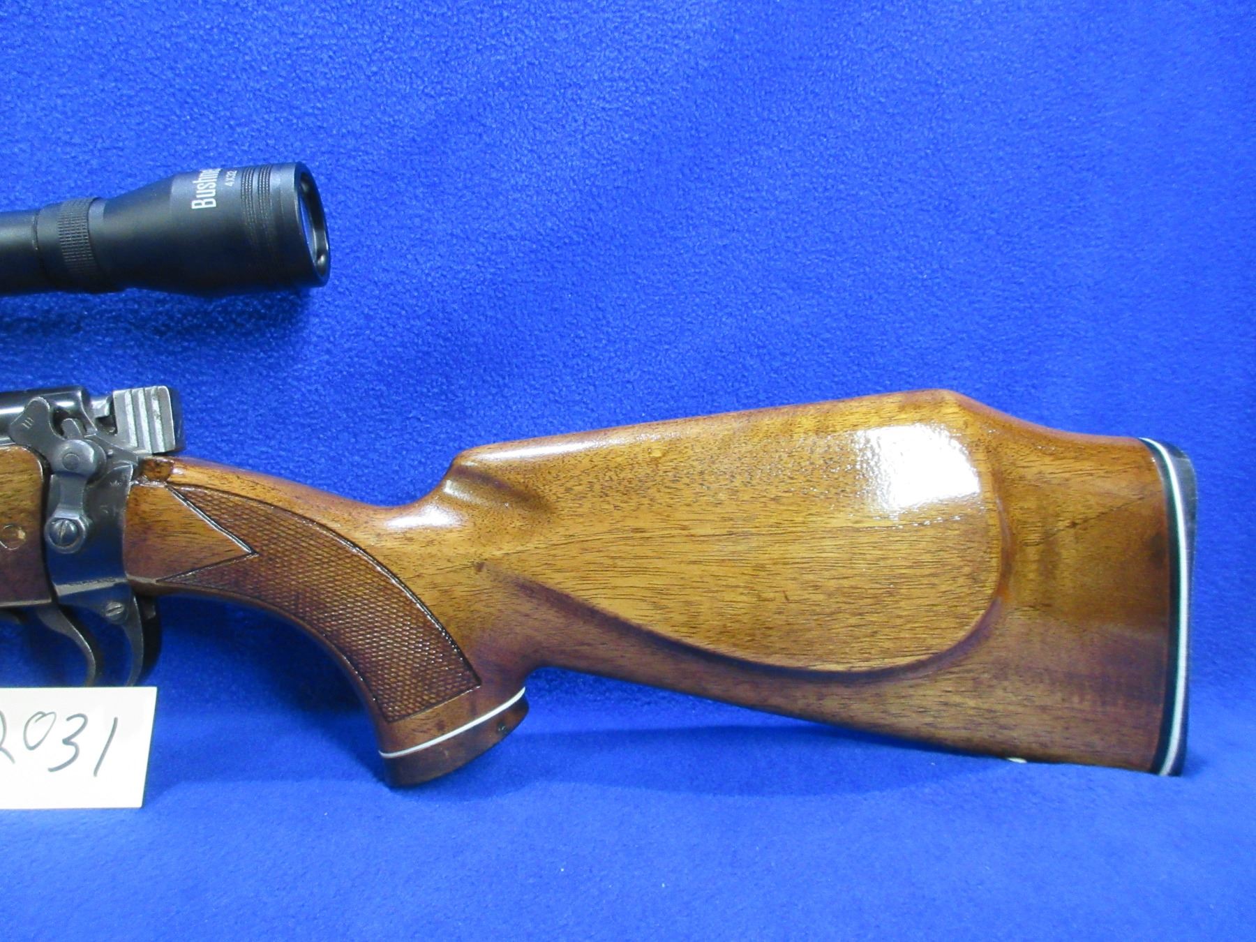 Non-Restricted - Parker Hale Refurbished Lee Enfield in 303 British - This is a bolt action rifle with removable magazine, action appears to be in good to very good working order. Barrel is 22", rifling is good to very good, bluing is good to very good, has both sights and Bushnell 4x32 scope - appears clear, rangefinding reticle, stock is good to very good (possible drying crack above trigger), length of pull is 13 3/4", butt plate good, comes with swivel studs. Ser # 5544