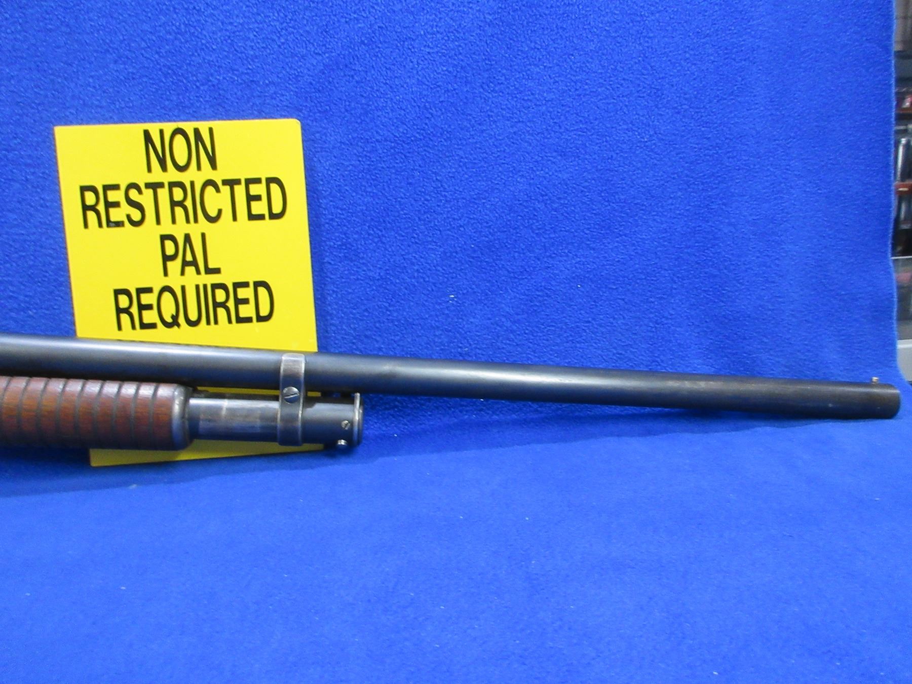 Non-Restricted - Winchester Model 1897 in 12 Ga. 2 3/4" Full - Made in 1920, this is a take down pump action shotgun with tube magazine, action appears to be in good to very good working order. Barrel is 28 1/2", bore is good to very good, bluing is good, has bead front sight, stock is good, forearm is good to very good, length of pull is 14", rubber recoil pad good. Ser # 395117