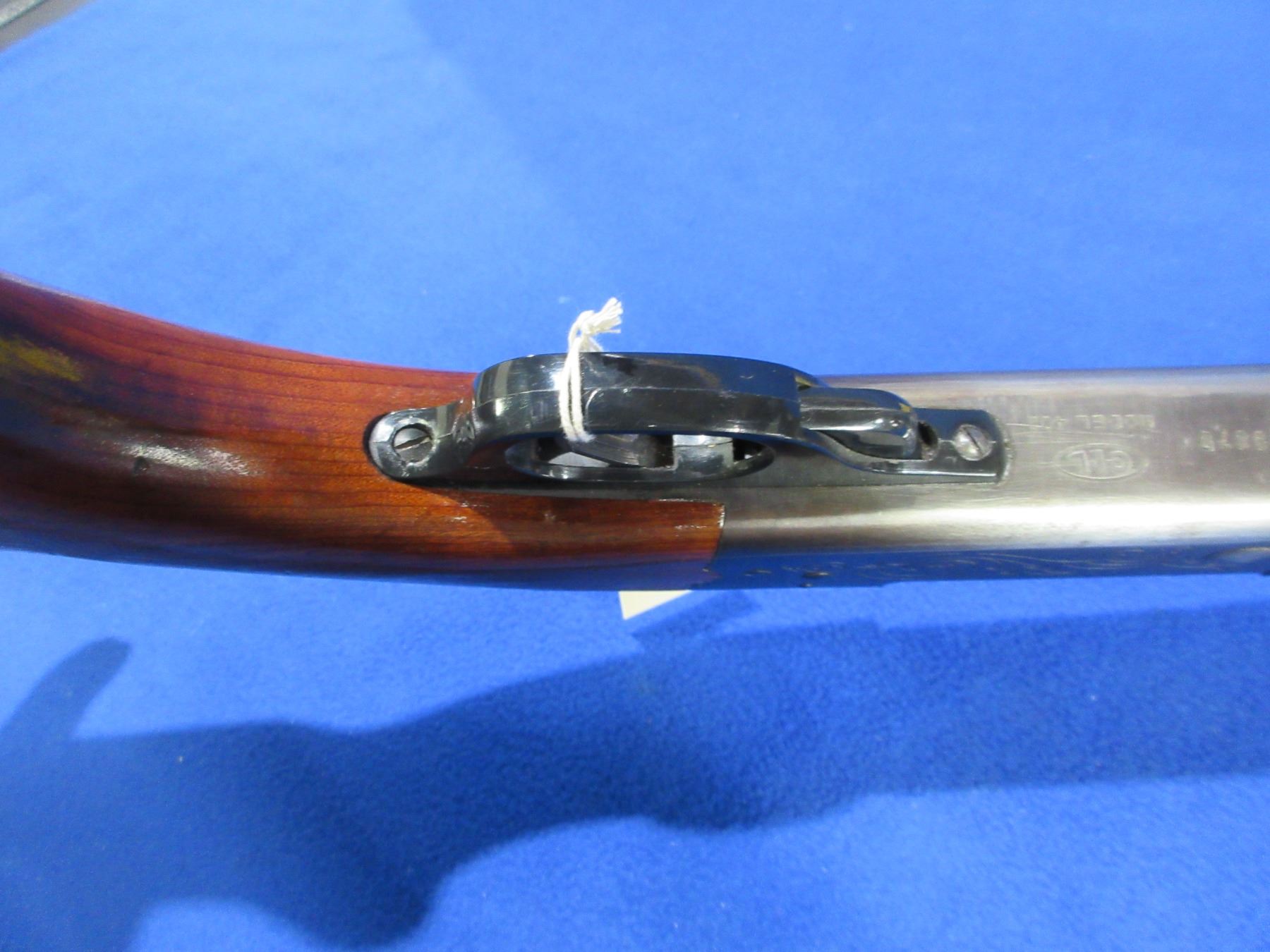 Non-Restricted - CIL Model 402 in 20 Ga. 2 3/4" Full - This is a tip up single shot shotgun, action is tight and appears to be in good to very good working order. Barrel is 28", bore is good to very good, bluing is good to very good but starting to turn grey, has bead front sight, stock has a crack repair with Premium Cyanoacrylate for wood on each side in the wrist area behind the action, forearm is good to very good, length of pull is 14", butt plate good. Ser # 429870
