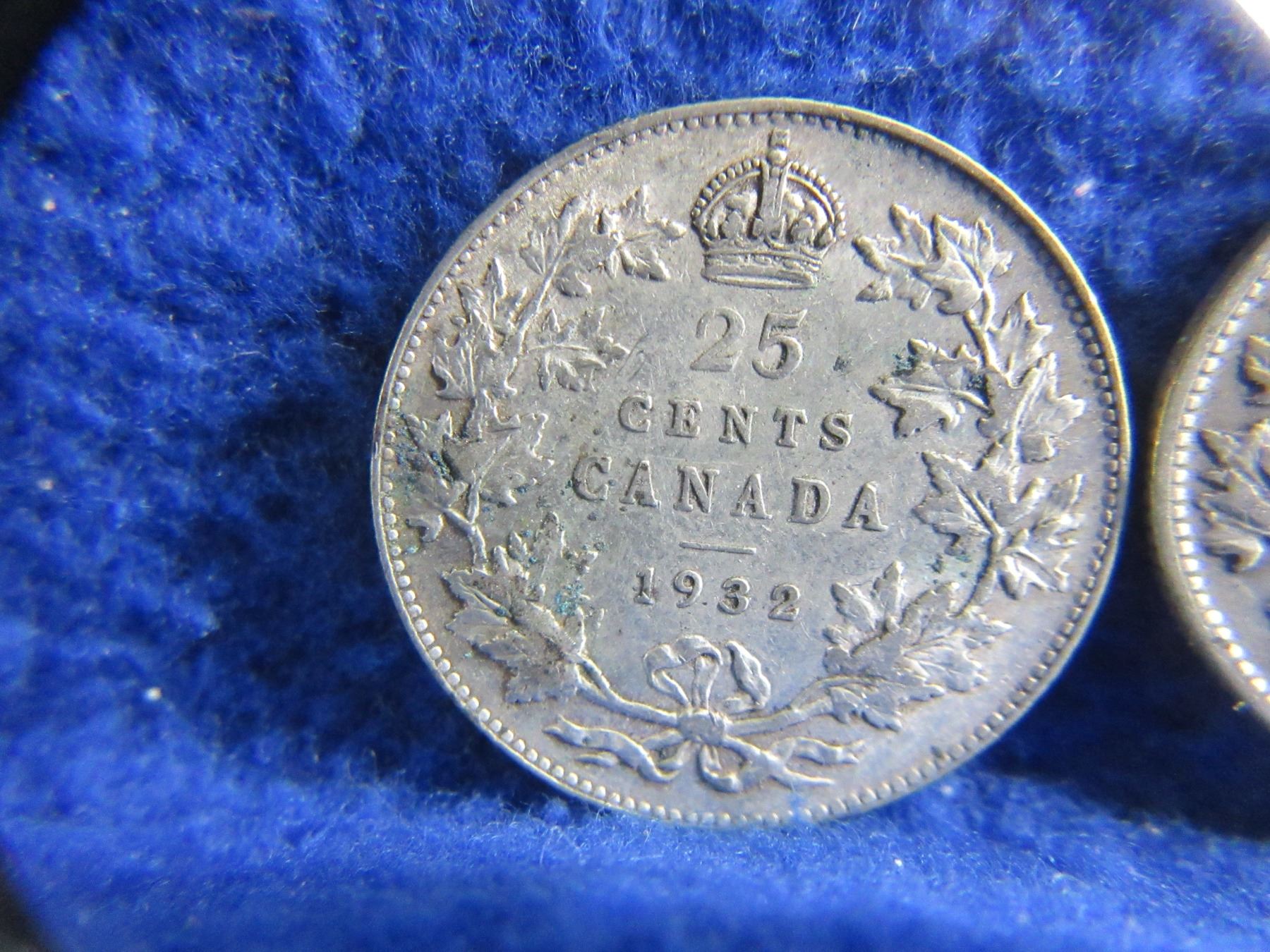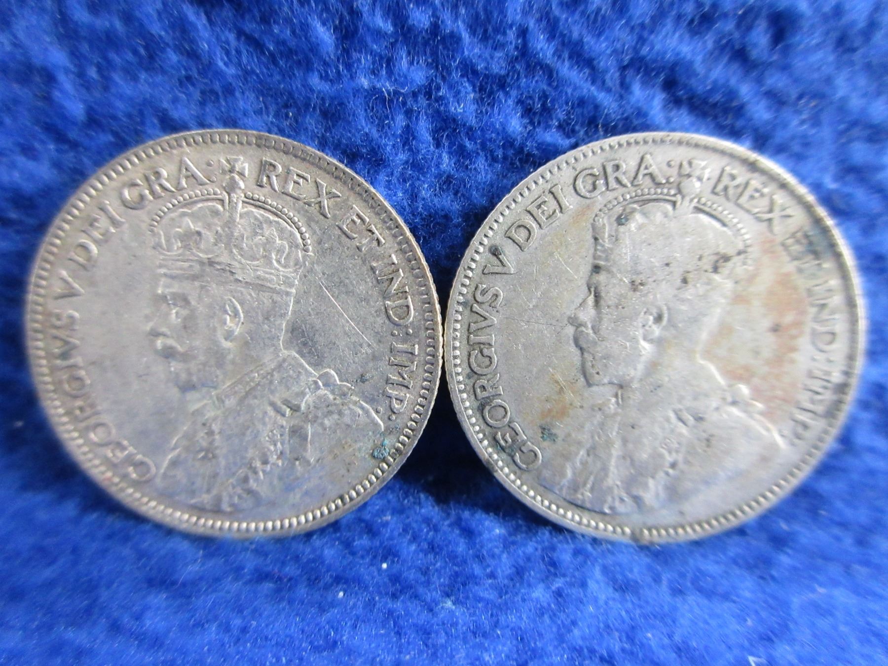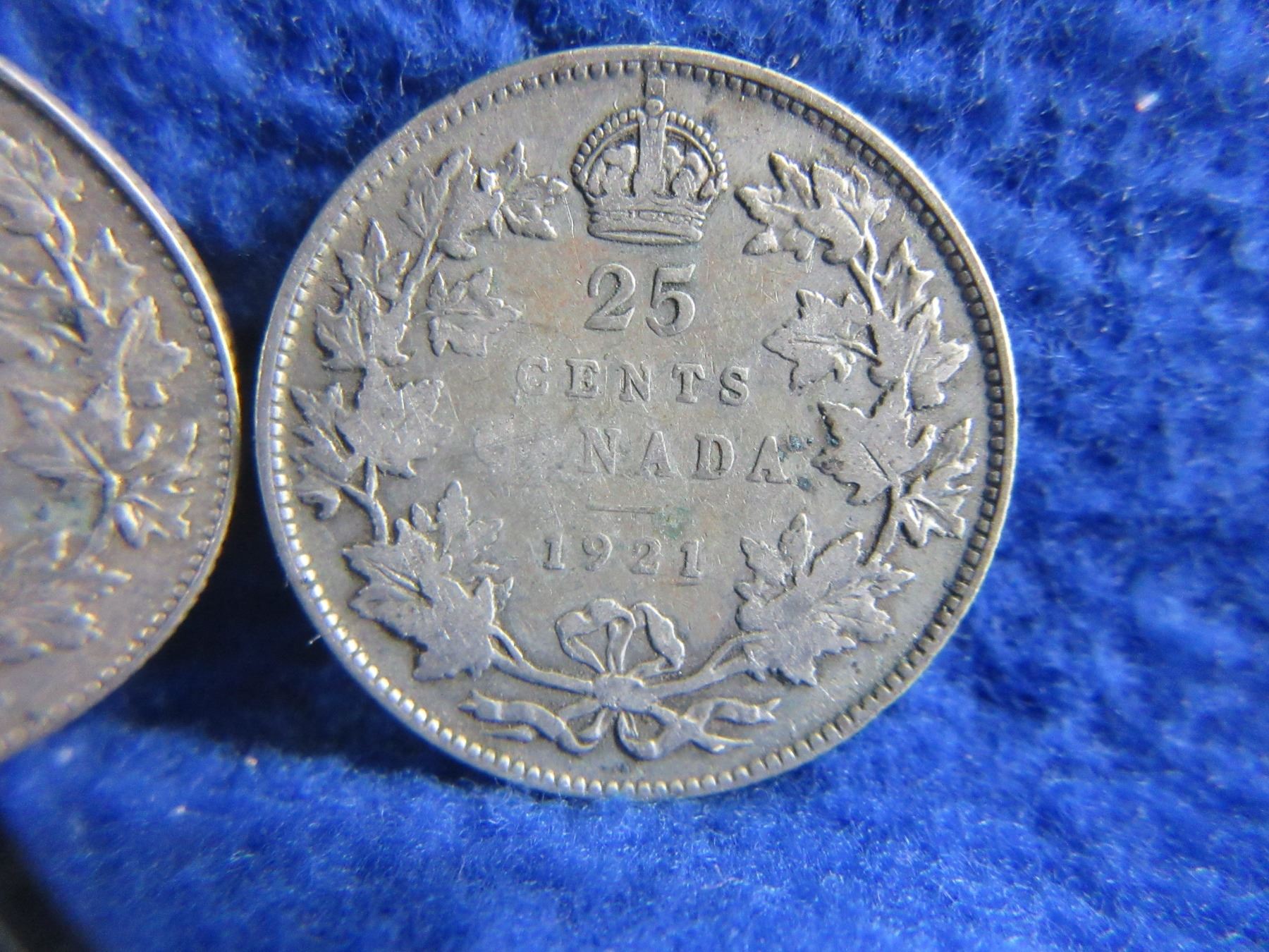Lot 2128 2 Canadian 25 Cent Coins - .800 Silver - 1921, 1932