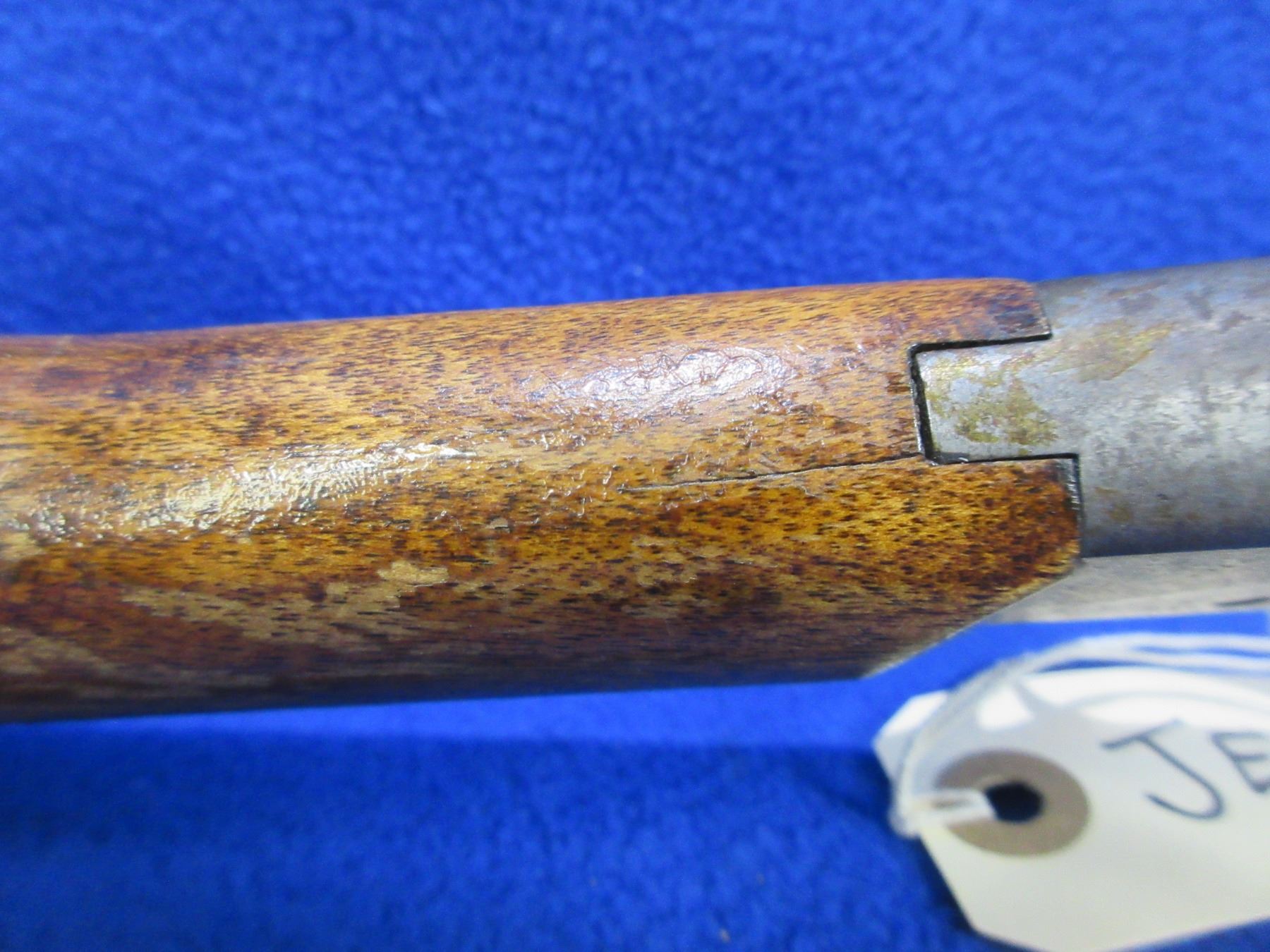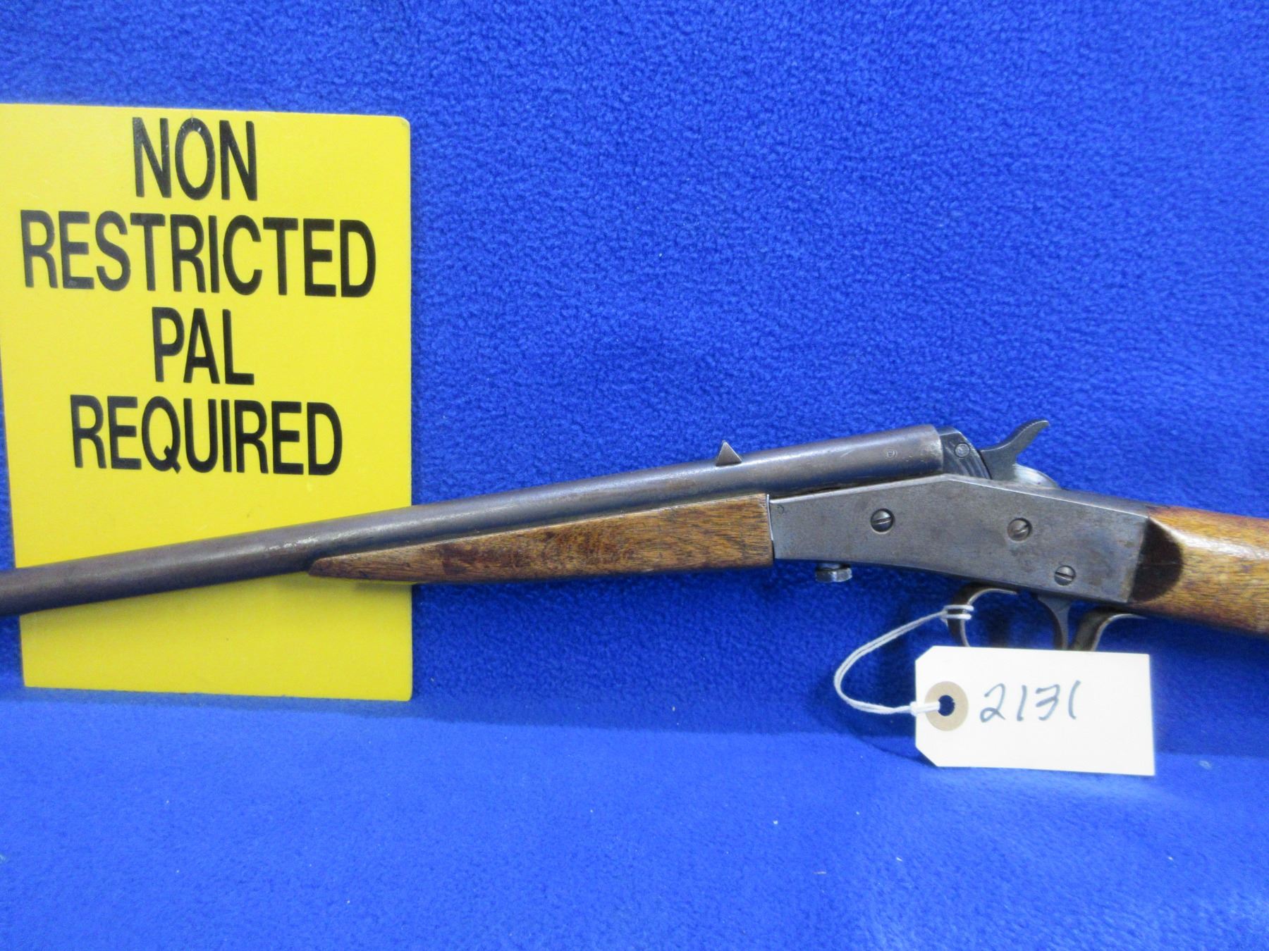 Non-Restricted - J. Stevens Model 14 1/2 in 22 LR - This is a single shot falling block rifle, action appears to be in good to very good working order. Barrel is 18", rifling is good for age, bluing is mostly brown, has both sights, stock has small hairline crack by upper tang and finish flaking, forearm good with some finish flaking, length of pull is 13", metal butt plate good. This gun is hard to find in better condition than this one, as it is in good overall condition. The only thing it appears to really need, is the correct screw that holds barrel to action. Ser # None