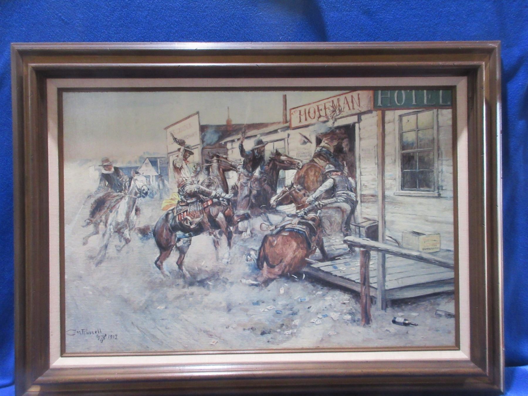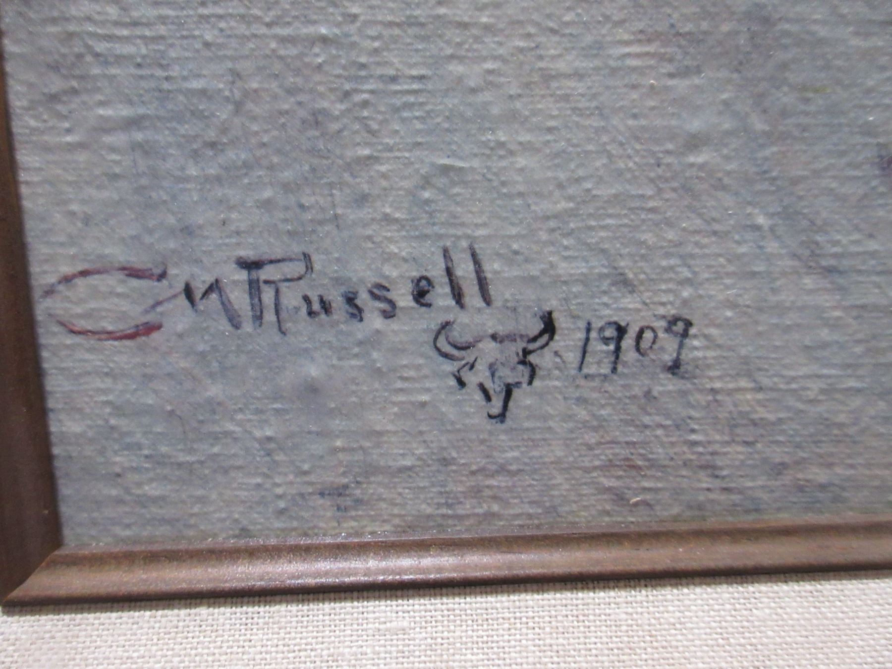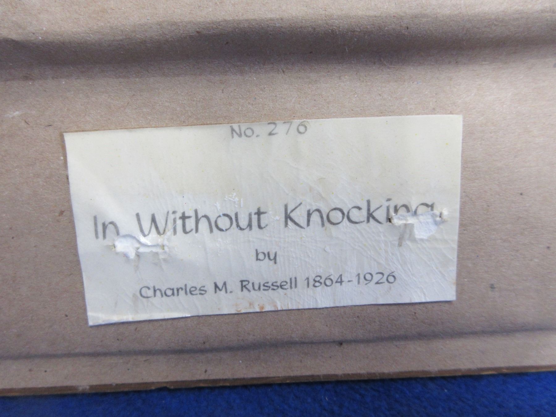 Lot 2152 Framed Charles M. Russell Print on Canvas 1909 "In Without Knocking" - PICK UP ONLY