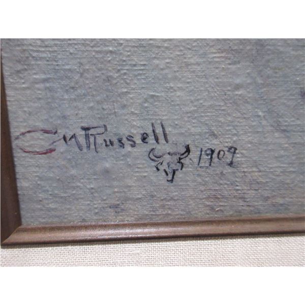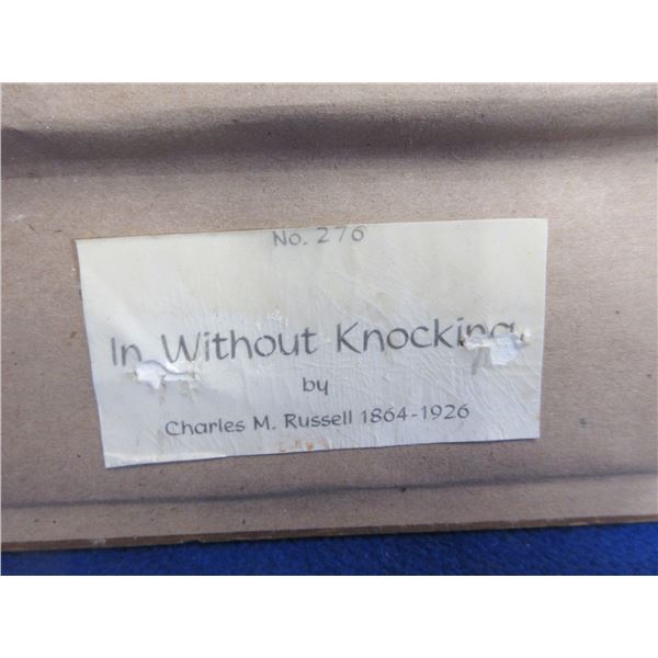 Framed Charles M. Russell Print on Canvas 1909 "In Without Knocking" - 37" x 27" - PICK UP ONLY