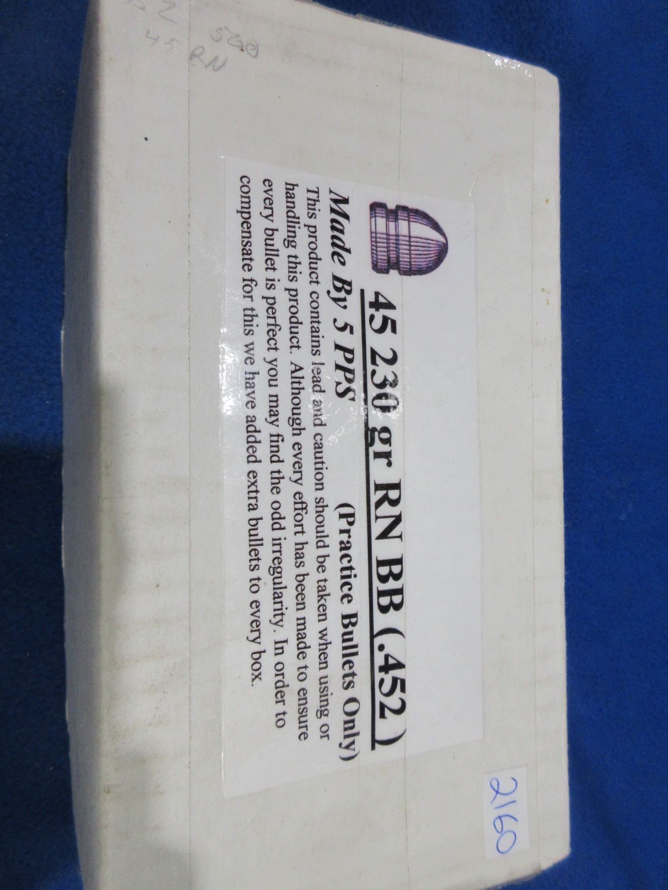 Lot 2160 45 Cal. .452" 230gr RN BB Bullets - Box of 500 - Made by PPS