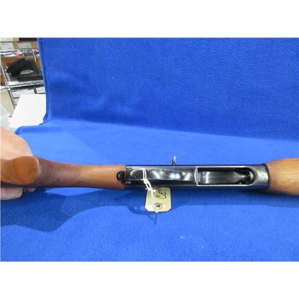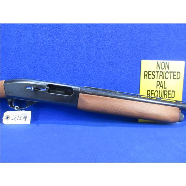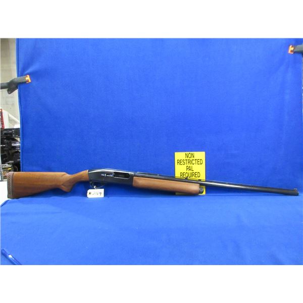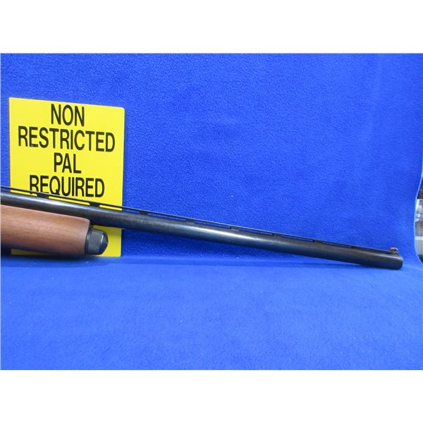 Non-Restricted - Remington Model 878 in 12 Ga. 2 3/4" - This is a semi-auto shotgun, action appears to be in good to very good working order. Barrel is 27 3/4", bore is good, bluing is good, has fiber optic front sight, stock is refinished and has a crack in wrist that appears repaired, forearm has been refinished and is good to very good, length of pull is 14 3/4", rubber recoil pad is not tight and shaped incorrectly. Ser # 67970L