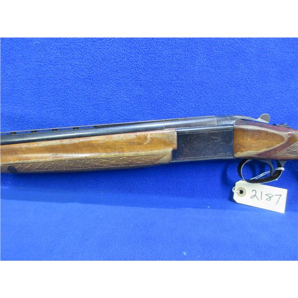 Non-Restricted - Tikka Model M77K in 12 Ga. 2 3/4" - This is an over/under shotgun with ejectors, action is tight and appears to be in good working order. Barrels are 26 3/4", bores are good, bluing is fair to good, has front sight, stock is fair to good and is slightly loose, forearm is fair to good, length of pull is 13 3/4", rubber pad good. Ser # 13198