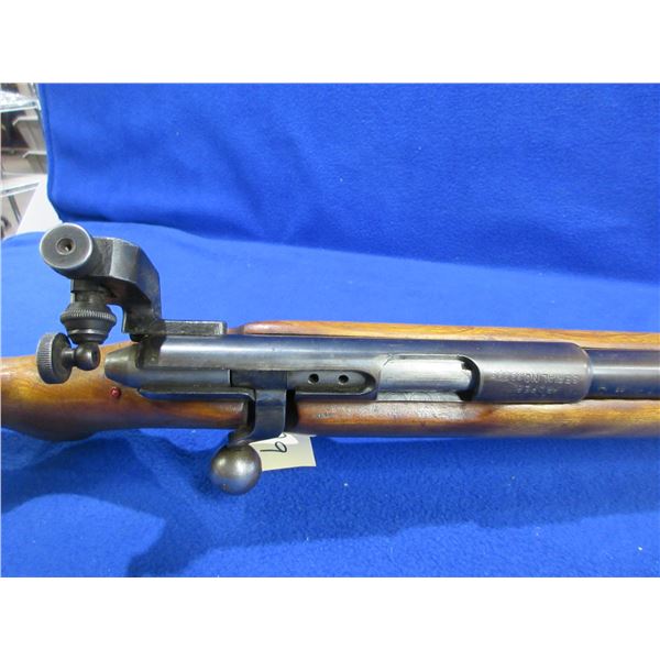 Non-Restricted - Mossberg Model 42MB(a) in 22 S/L/LR - This is a bolt action rifle with removable magazine (Magazine is Missing), action appears to be in good to very good working order. Barrel is 23", rifling is good to very good, bluing is good, has Parker Hale modified front sight and Parker Hale PH 16D rear peep sight, stock has possible drying crack on wrist area and forearm is good to very good, length of pull is 13 1/4", butt plate good, comes with swivels. Gun is stamped United States Property. Ser # 32728