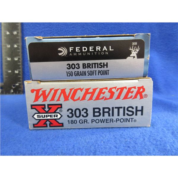 303 British Federal & Winchester (Pick Up or Ship by UPS Only) Cartridges - Box of 20 (Federal 150gr SP), Box of 20 (Winchester 180gr PP)