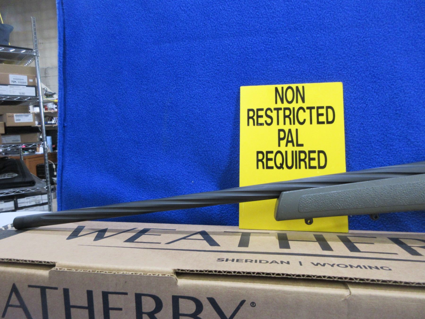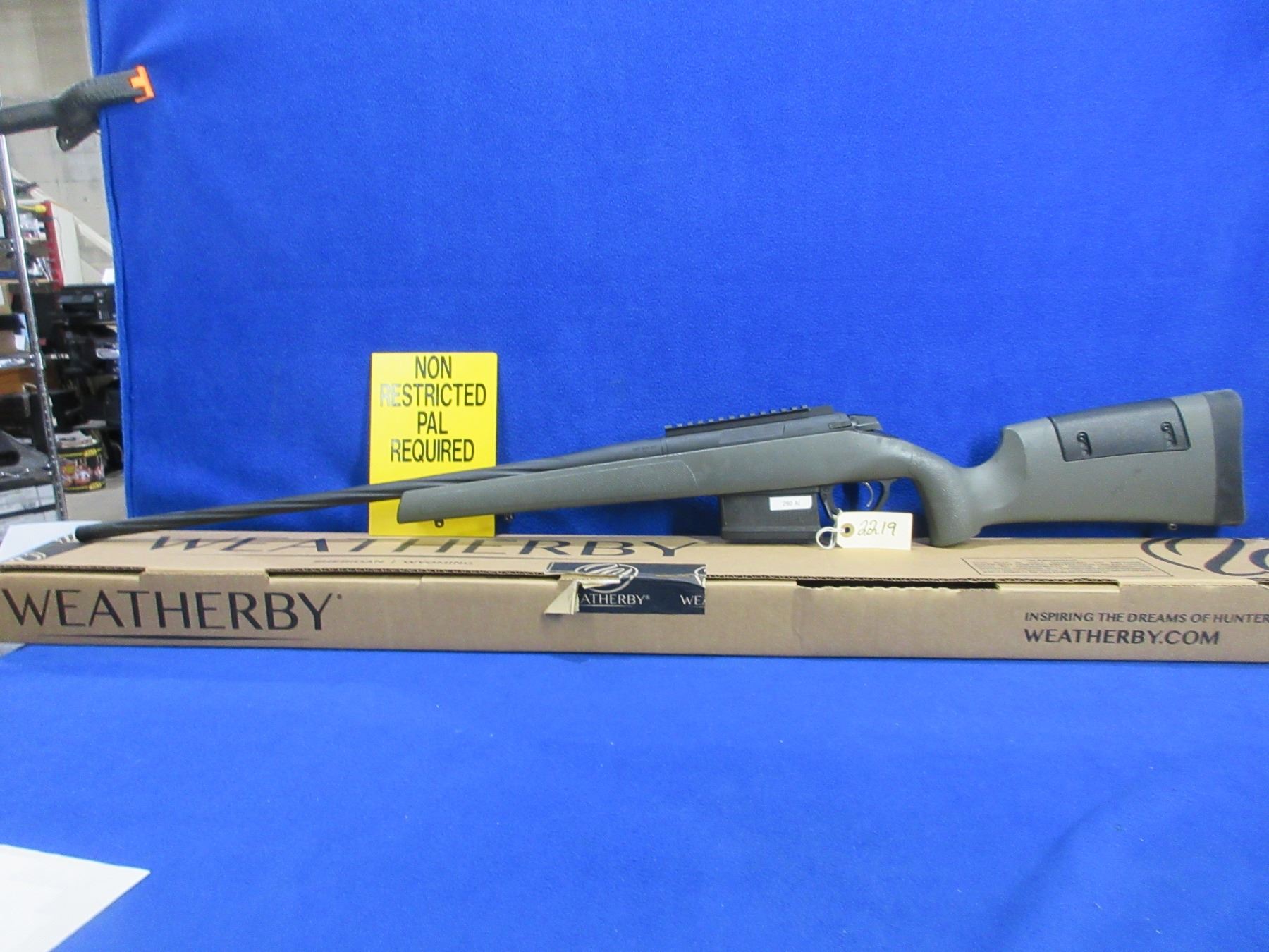 Non-Restricted - Weatherby Model 307 in 280 ACK IMP - This is a bolt action rifle with removable magazine, action appears to be in very good working order. Fluted barrel is 21", rifling is very good, black matte finish is very good, has no sights but has Picatinny rail, stock is good to very good, length of pull is 13 1/2", rubber recoil pad is very good, comes with swivel studs & bipod stud. Comes with original box but no paper work. Ser # AW002484