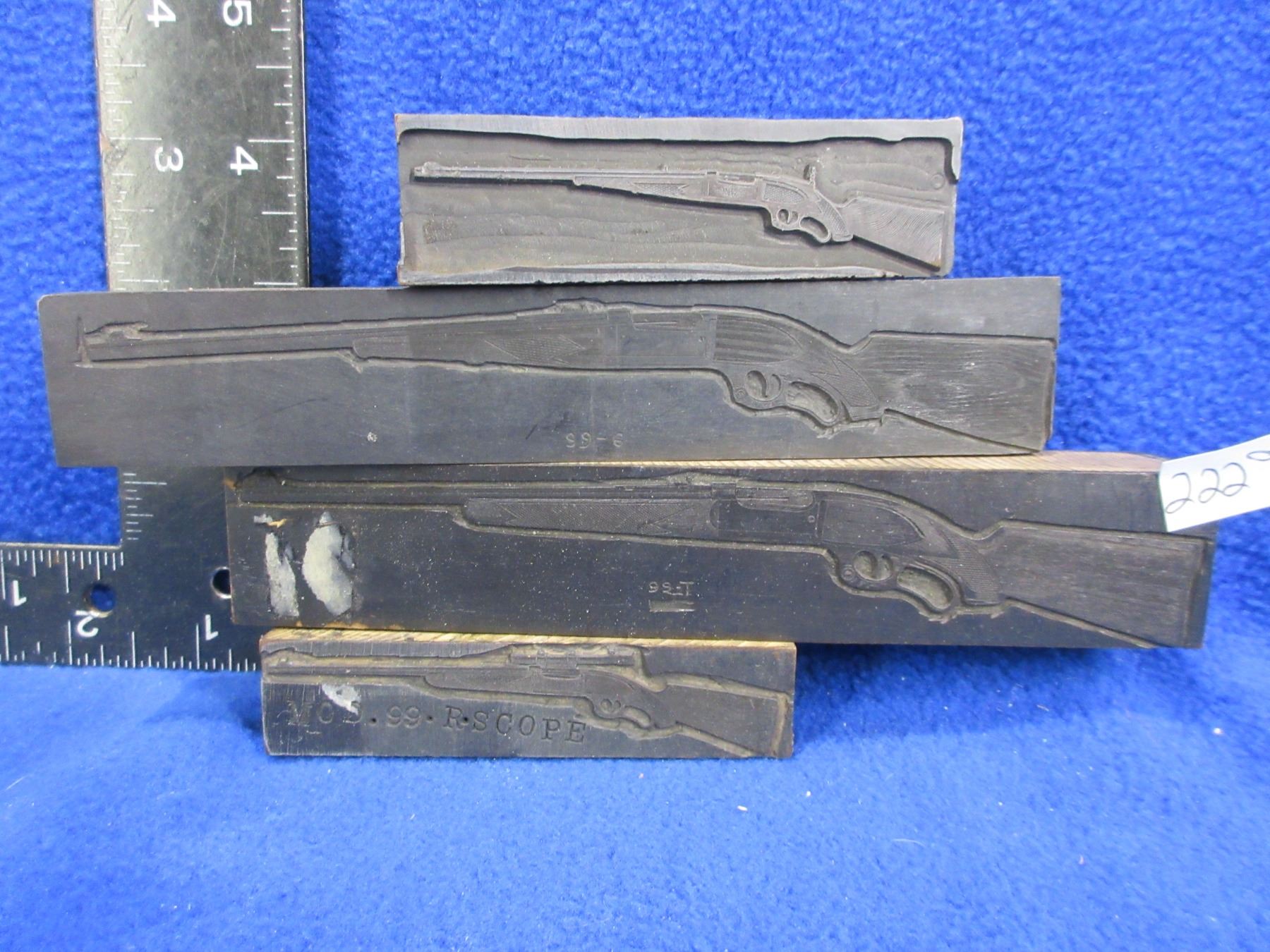 Lot 2229 Antique Savage Printing Press Blocks - Set of 4 - Appear to be Lever Action Rifles