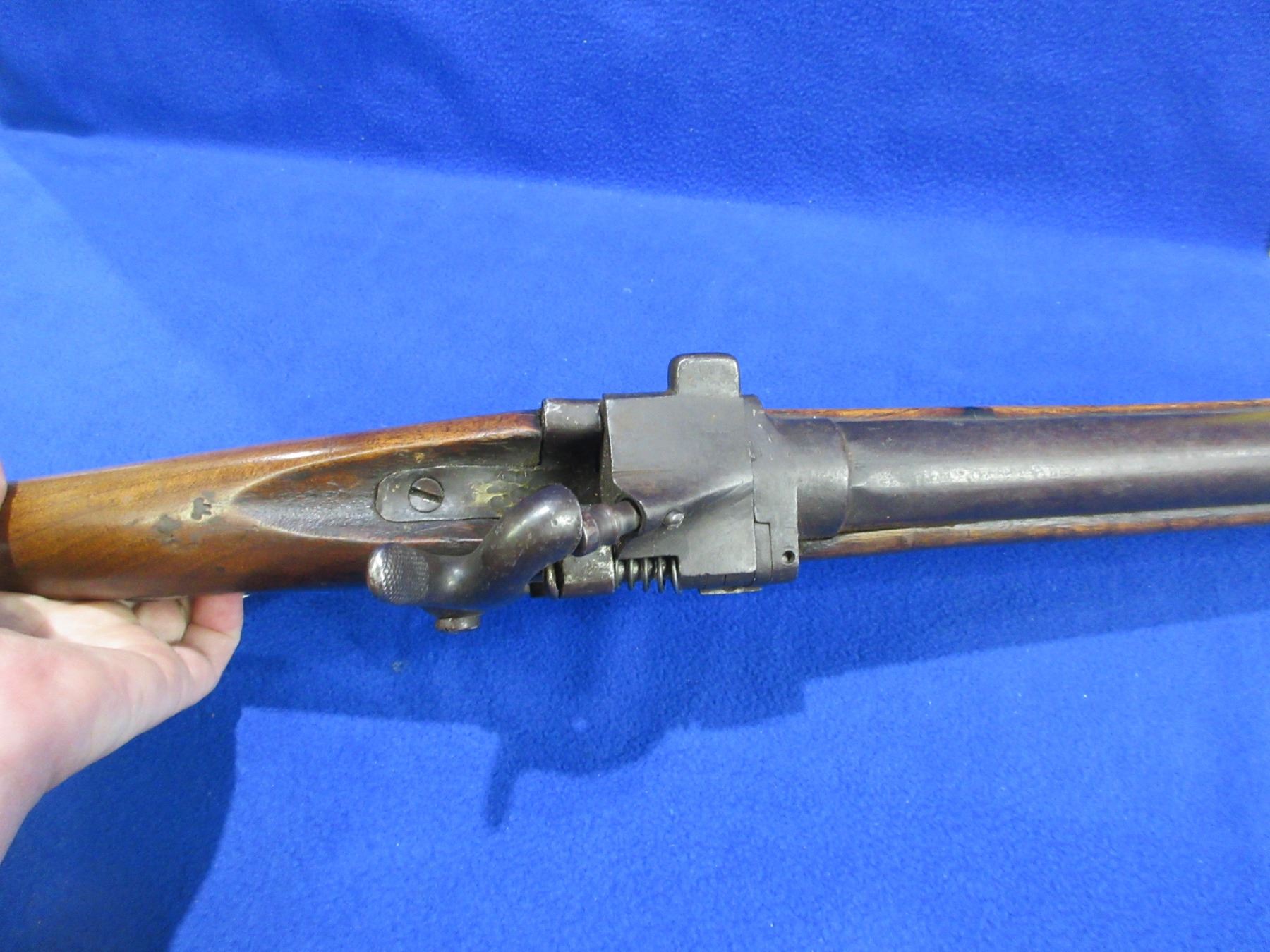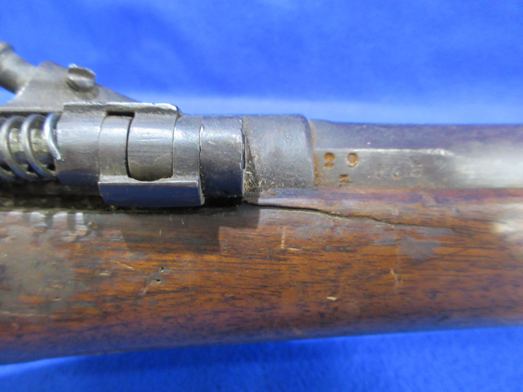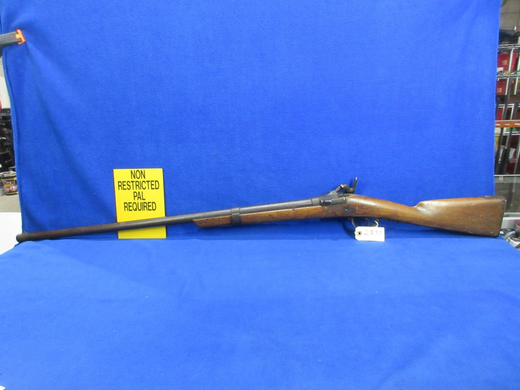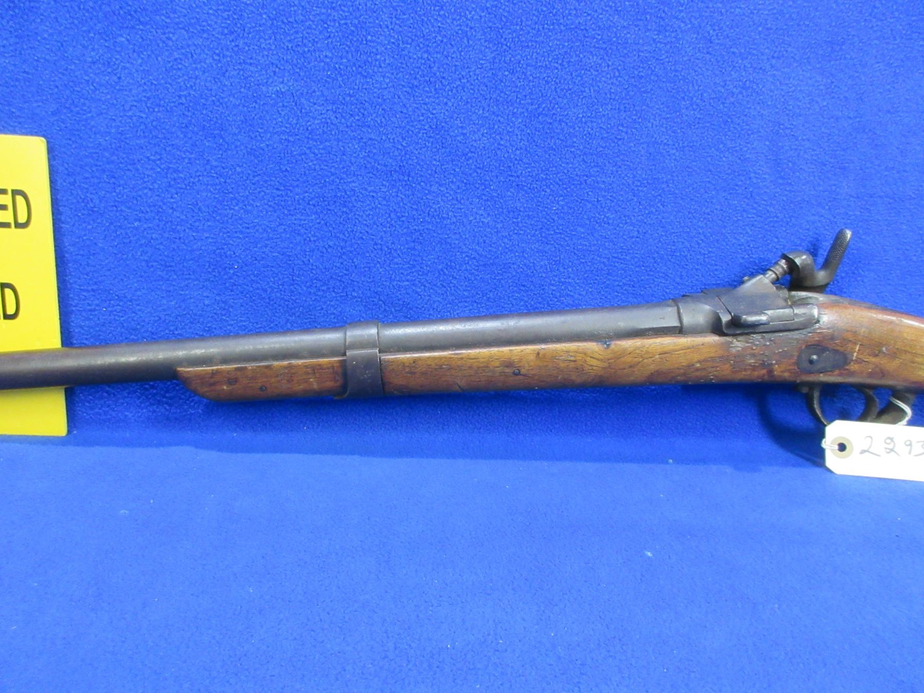 Non-Restricted - Drisket & Waroux Leige in 12 Ga. 2 1/2" - This is a breech load single shot hammer shotgun, action is loose and appears to be in unsafe/non working order as hammer is loose and will not hold cock. Barrel is 32", bore is fair to good, bluing is brown, has blade front sight, stock is fair to good for age with many usage marks and cracks on both sides of the action, length of pull is 13", metal butt plate good. Ser # 29-1332
