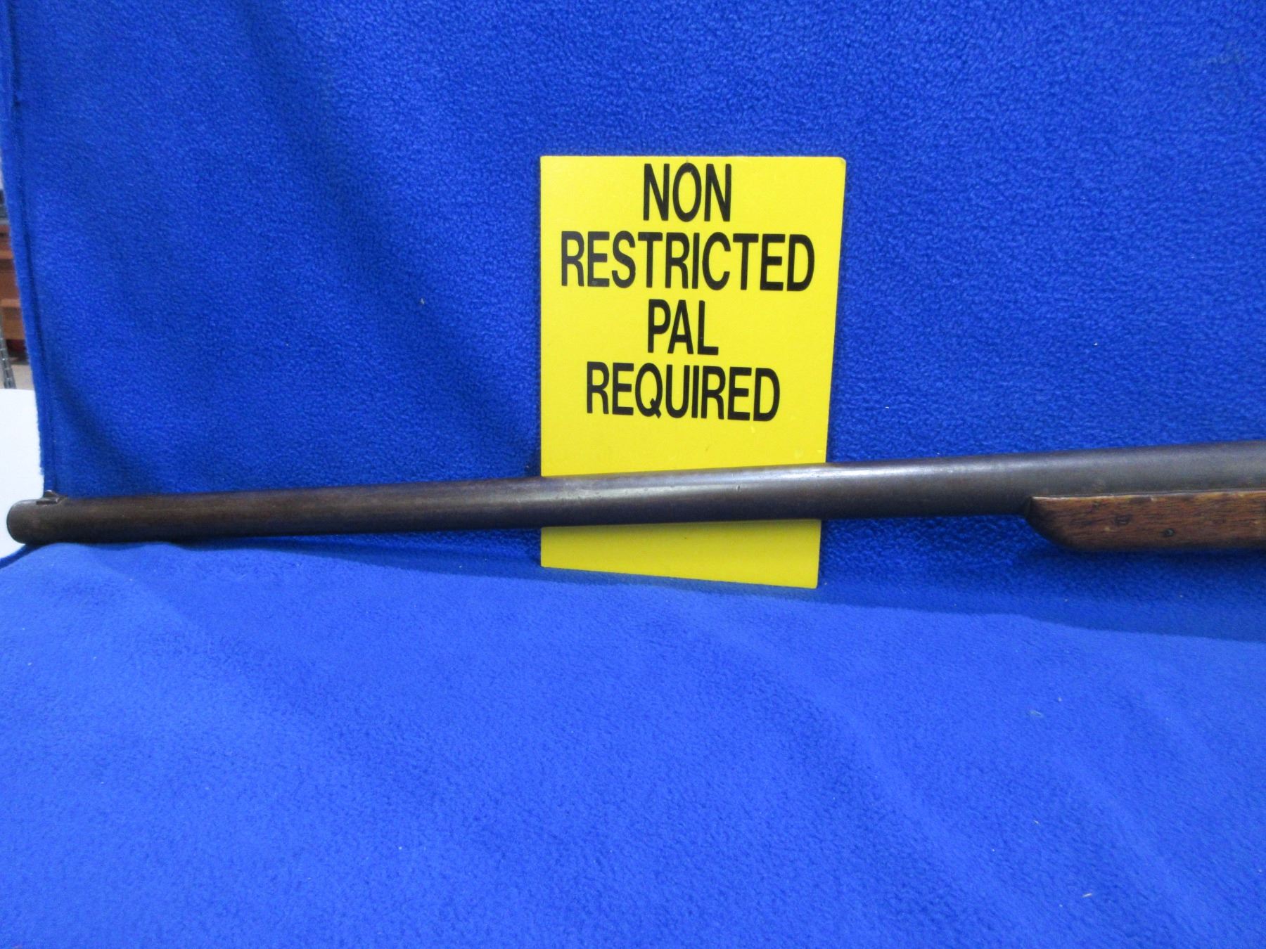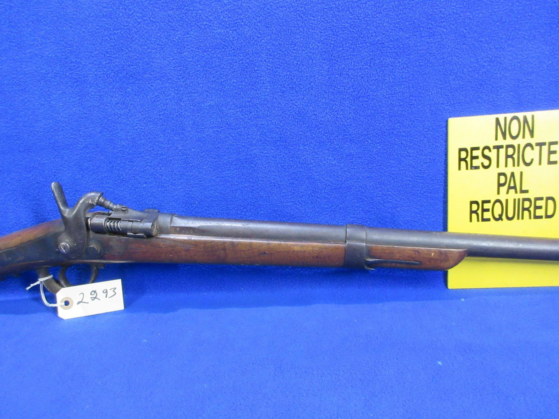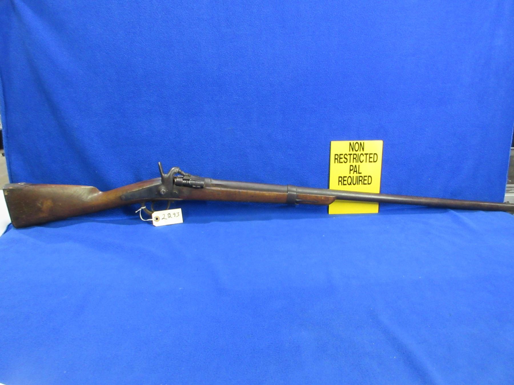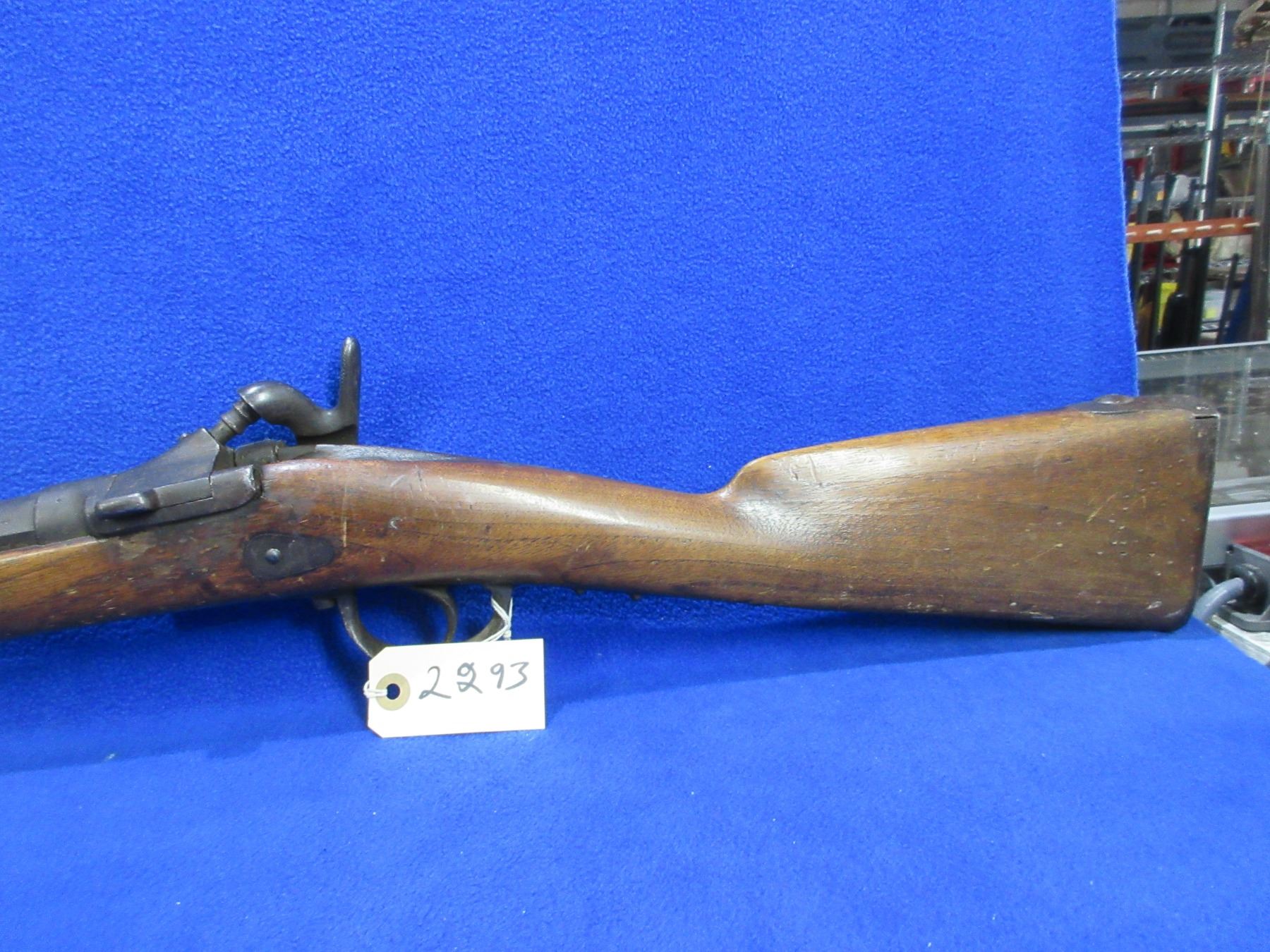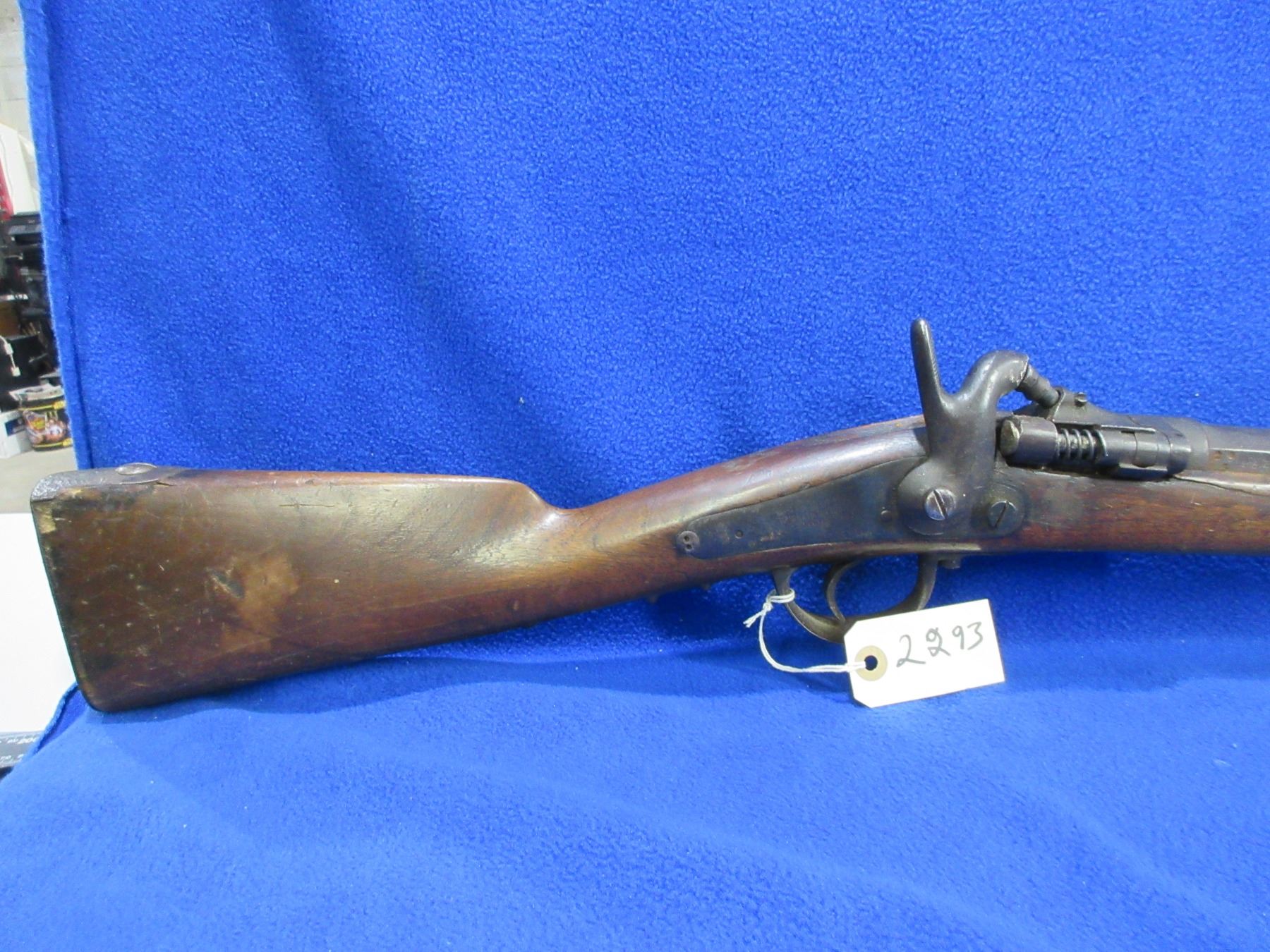 Non-Restricted - Drisket & Waroux Leige in 12 Ga. 2 1/2" - This is a breech load single shot hammer shotgun, action is loose and appears to be in unsafe/non working order as hammer is loose and will not hold cock. Barrel is 32", bore is fair to good, bluing is brown, has blade front sight, stock is fair to good for age with many usage marks and cracks on both sides of the action, length of pull is 13", metal butt plate good. Ser # 29-1332