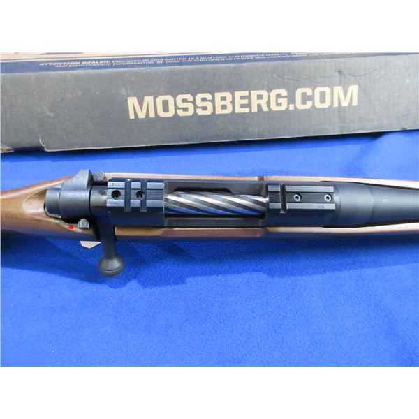 Non-Restricted - Mossberg Model Patriot in 7MM-08 Rem. - This is a Like New bolt action rifle with removable magazine, action appears to be in very good working order. Partially fluted barrel is 22", rifling is very good, matte black finish is very good, has no sights but has Picatinny style bases, stock is good to very good, length of pull is 13 3/4", rubber recoil padf good, comes with swivel studs, original box and paperwork. Ser # MPR0427396