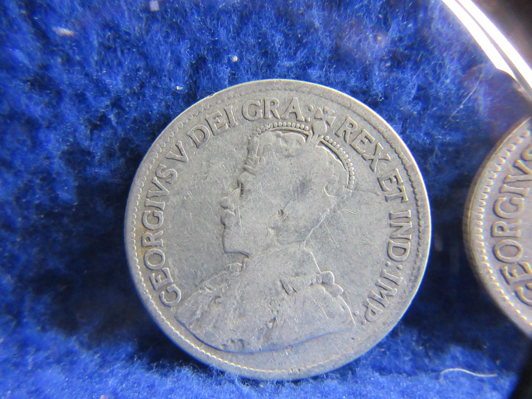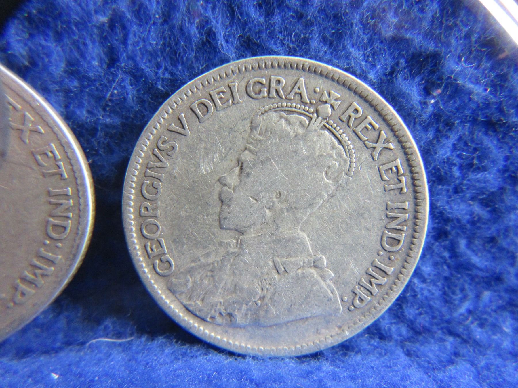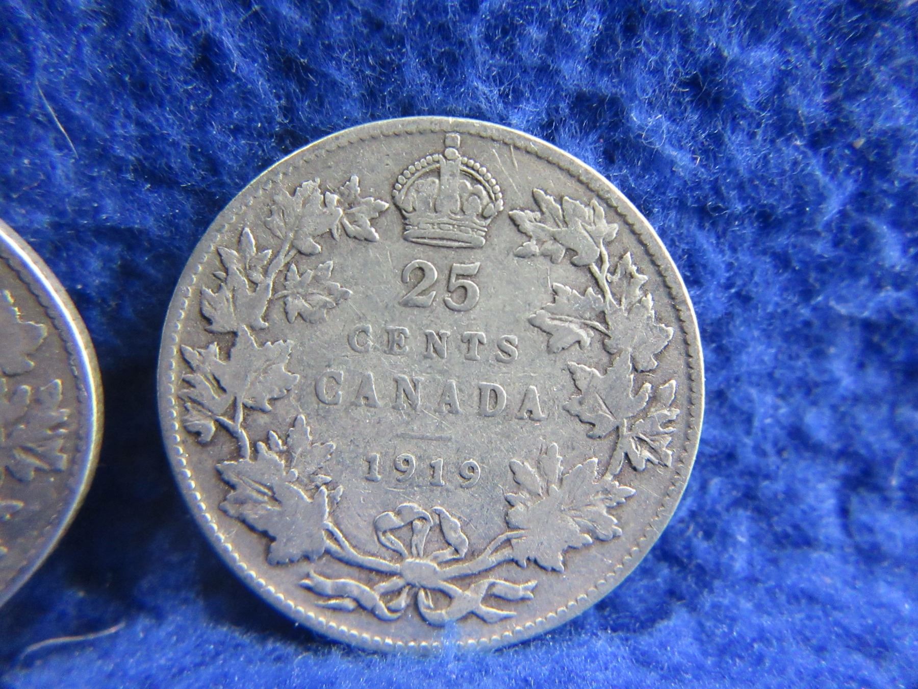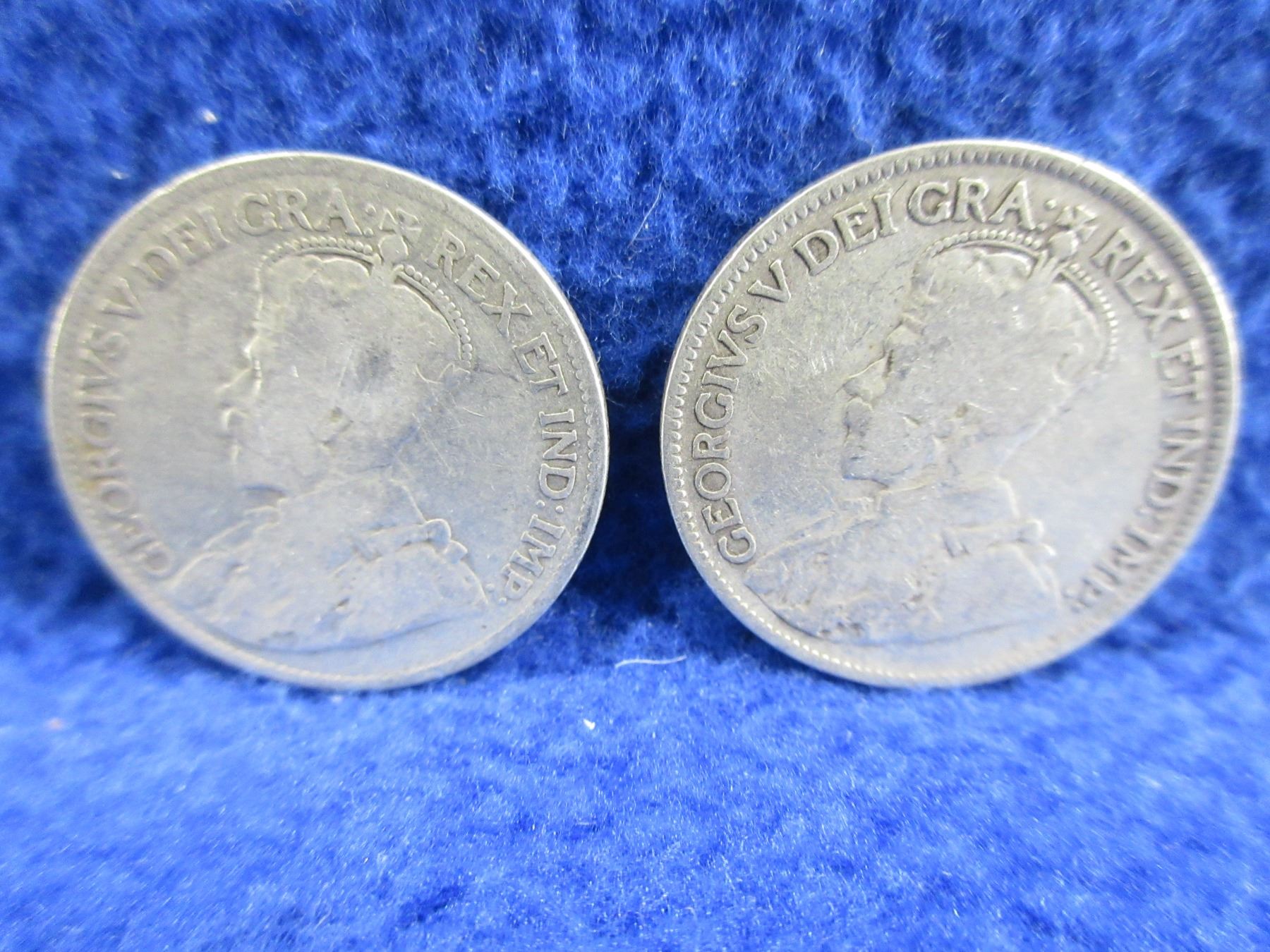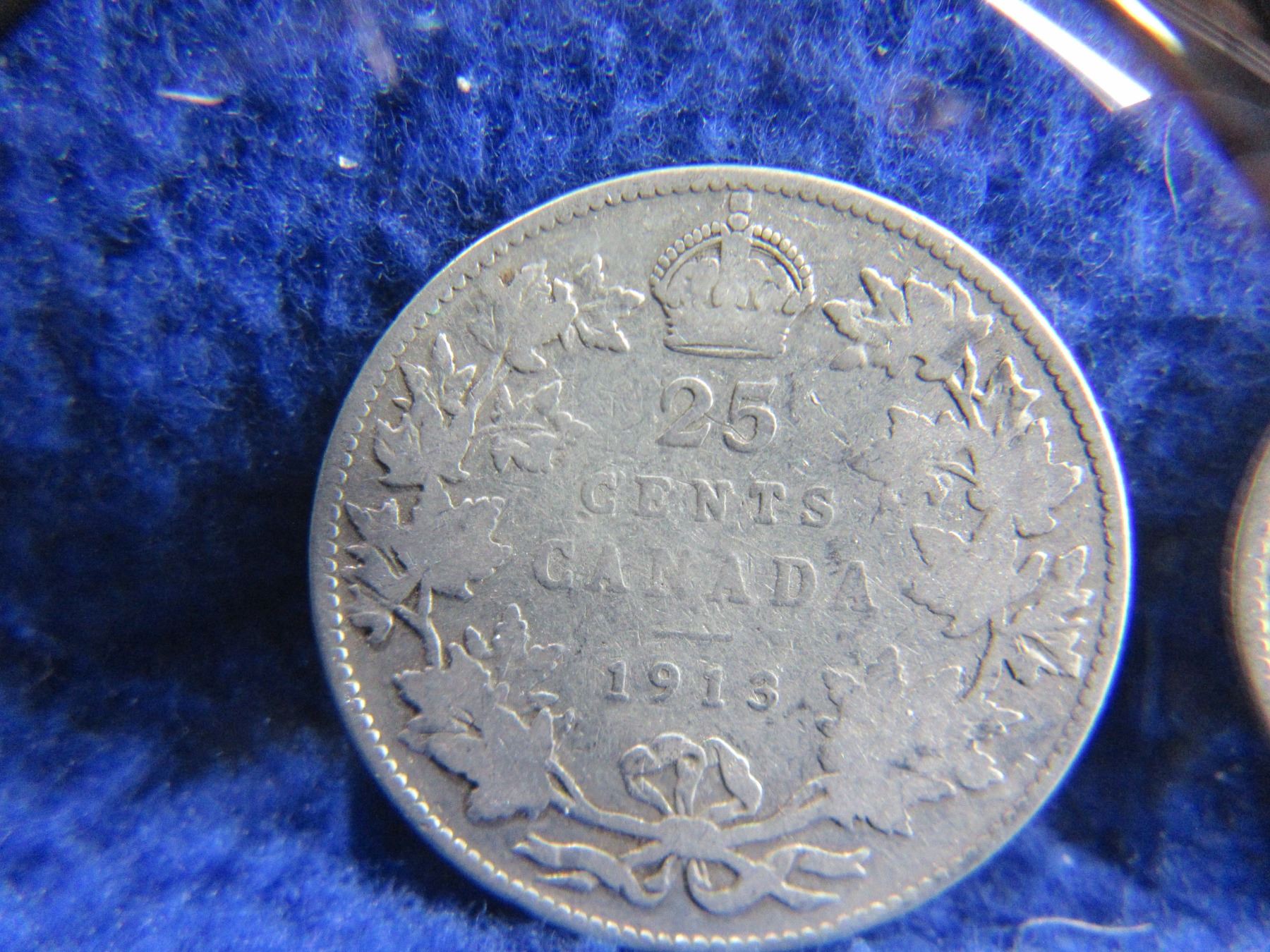 Lot 2355 2 Canadian 25 Cent Coins - .925 Silver - 1913, 1919
