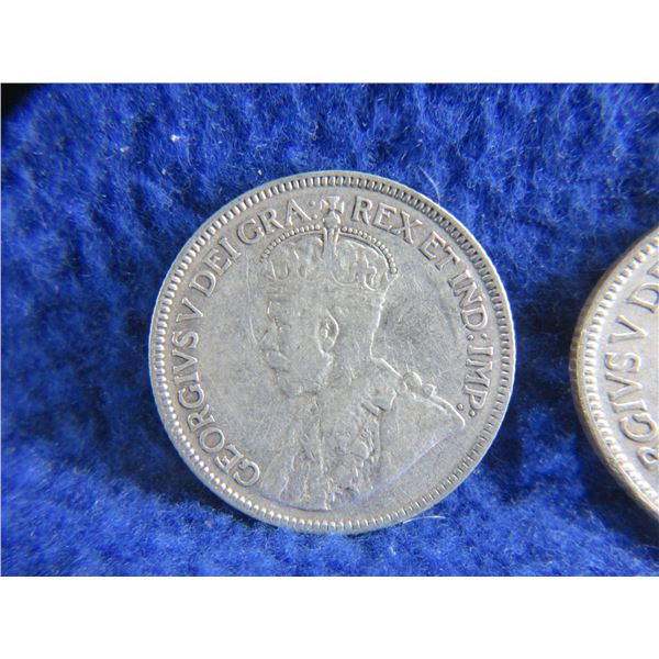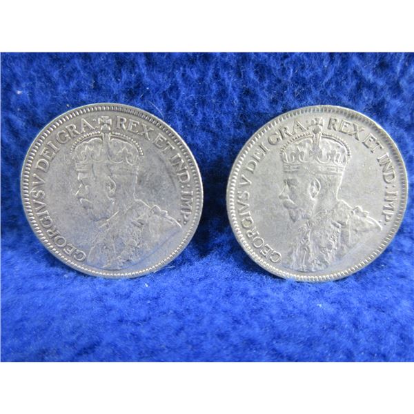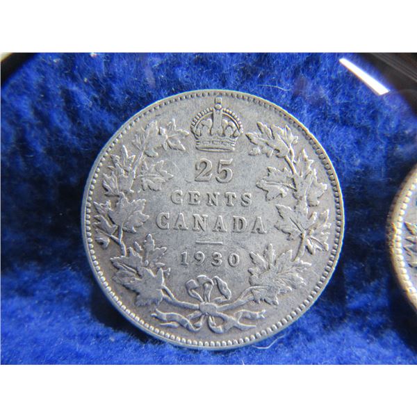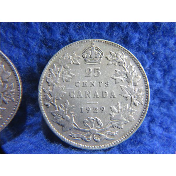 2 Canadian 25 Cent Coins - .800 Silver - 1929, 1930