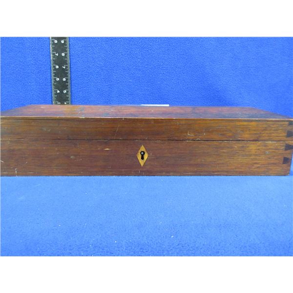 Vintage Wood Handgun Box - 16 1/2" x 7 3/4" x 3 3/4" High - Lock mechanism is missing the top piece, no key