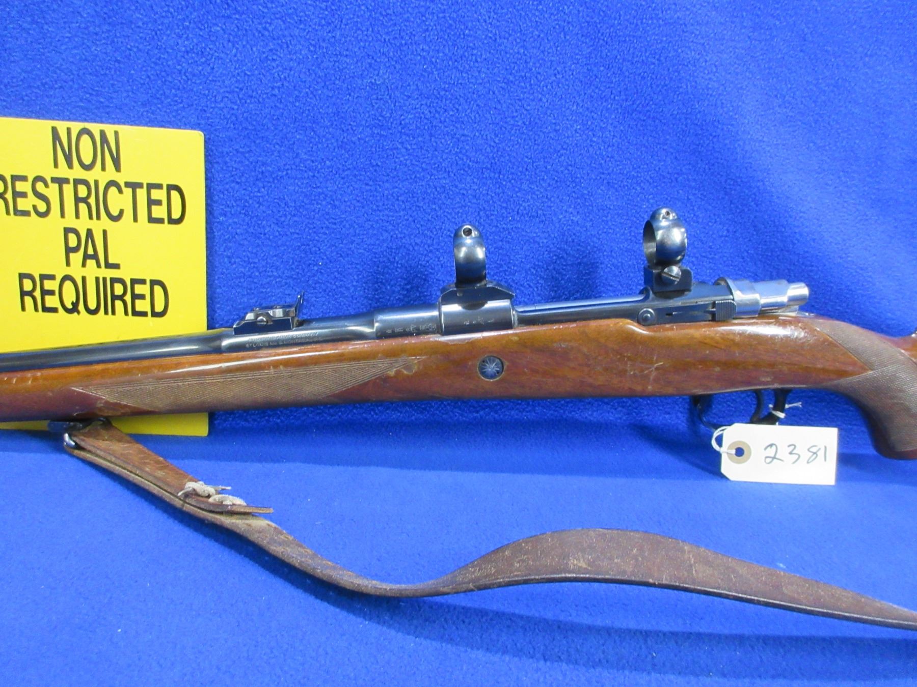 Non-Restricted - Browning Model FN in 270 Win. - This is a bolt action rifle with floor plate magazine, action appears to be in good to very good working order. Barrel is 22", rifling is good to very good, bluing is good to very good with some muzzle wear, has both sights and Buehler rings and bases, stock is good with many usage marks, length of pull is 13 1/2", butt plate good, comes with swivels and a leather sling. Ser # 2L17252