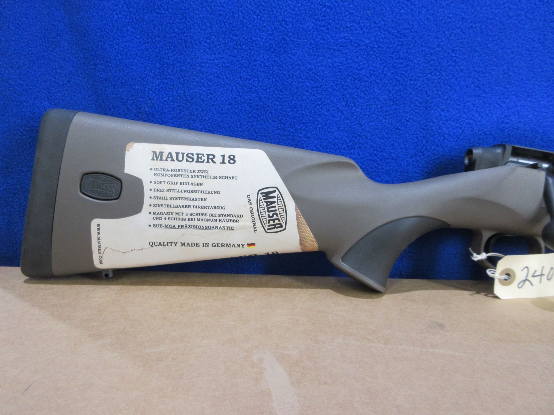 NEW - Non-Restricted - Mauser Model 18 in 270 Win. - This is a NEW, Never Fired bolt action rifle with removable magazine. Barrel is 21", has no sights but is drilled and tapped, synthetic two-tone stock, length of pull is 14", quick removable rubber recoil pad, comes with swivel studs, paperwork and original box. Ser # LC045118
