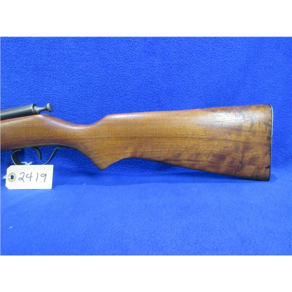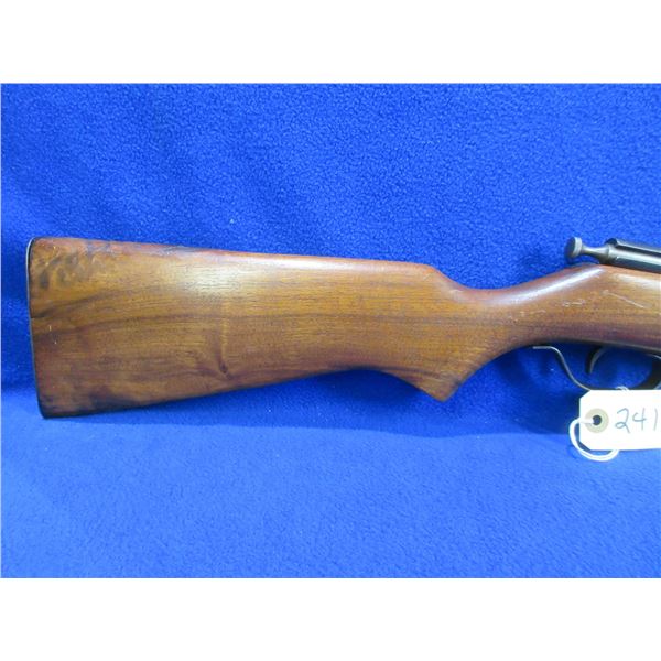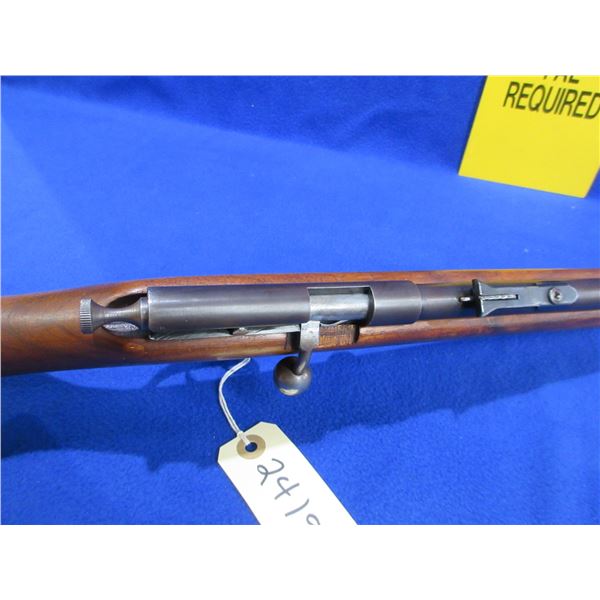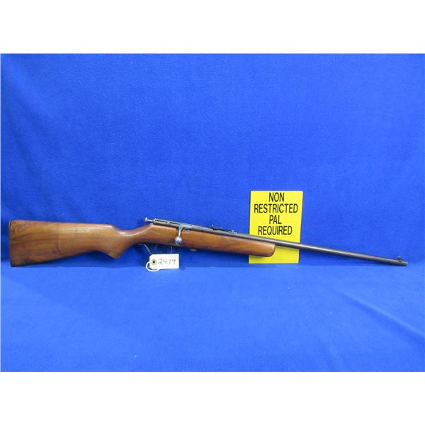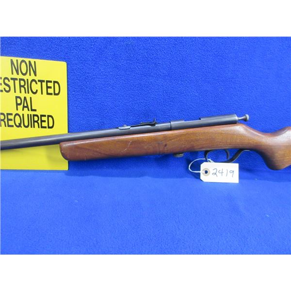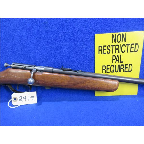 Non-Restricted - Cooey Model 39 in 22 S/L/LR - This is a single shot bolt action rifle, action appears to be in good to very good working order. Barrel is 22", rifling is good to very good, bluing is good, has both sights, stock is good to very good with usage marks, length of pull is 13 3/4", metal butt plate good. Ser # None