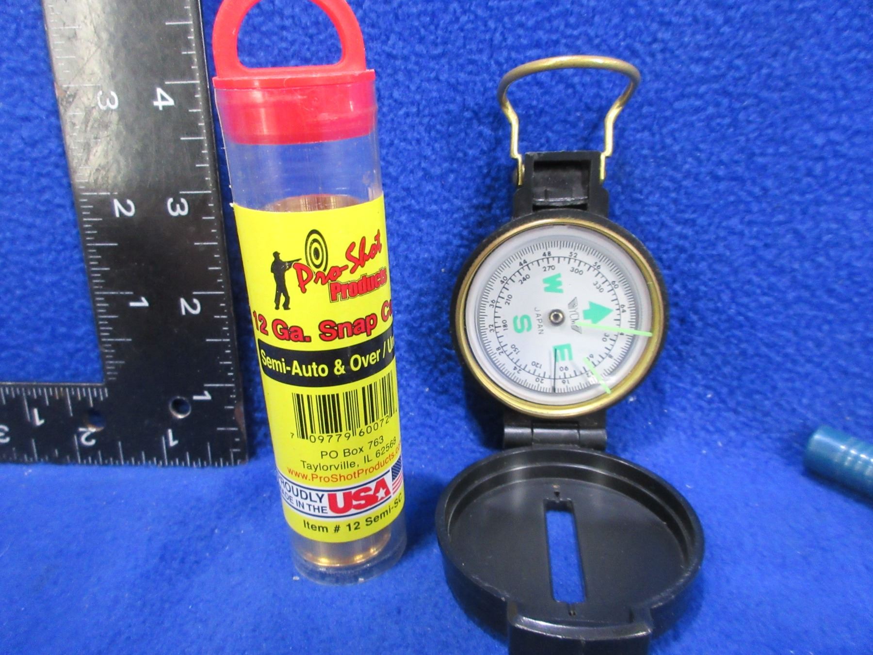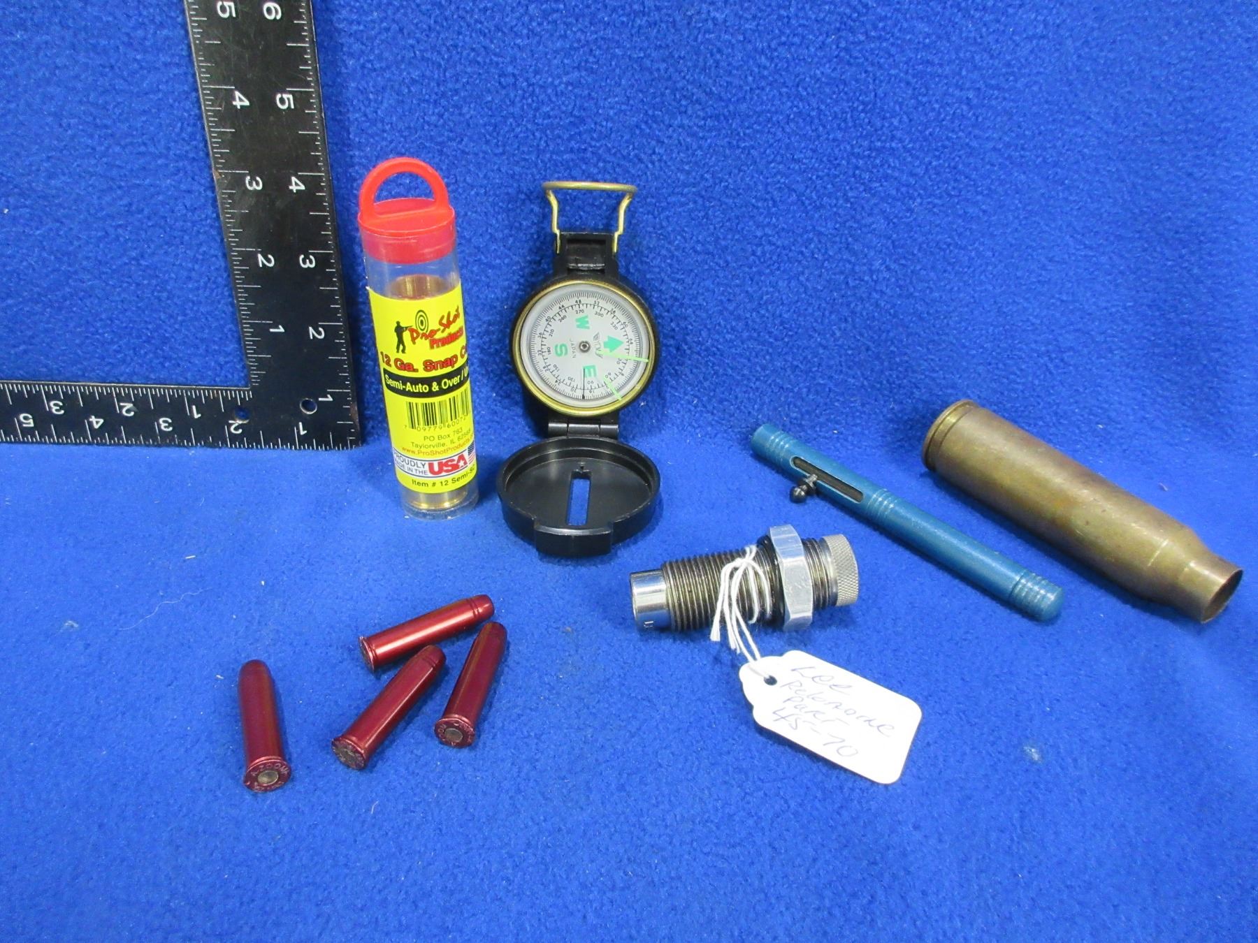 Lot of Misc. - 45-70 Die, 357 & 12 Ga. Snap Caps, Compass, Shell Casing, Tru-Flare