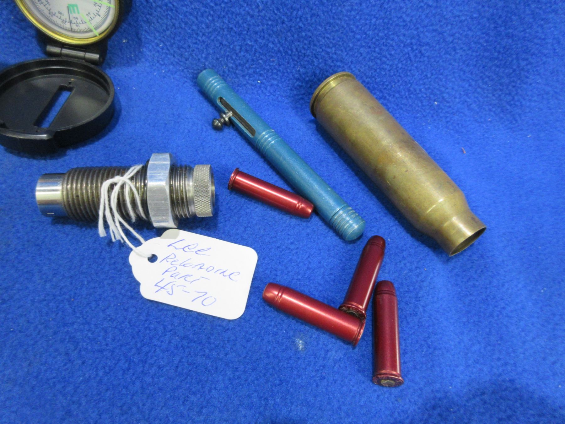 Lot 2448 Lot of Misc. - 45-70 Die, 357 & 12 Ga. Snap Caps, Compass, Shell Casing, Etc.