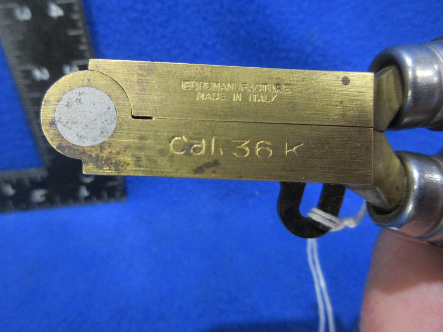 Vintage Brass 36 Cal. Round Ball Double Cavity Bullet Mold with Handles - Euromanufacture, Made in Italy