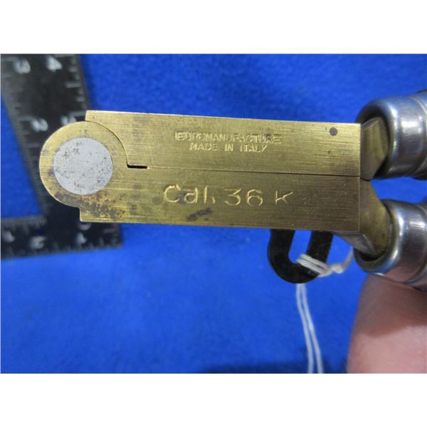 Vintage Brass 36 Cal. Round Ball Double Cavity Bullet Mold with Handles - Euromanufacture, Made in Italy