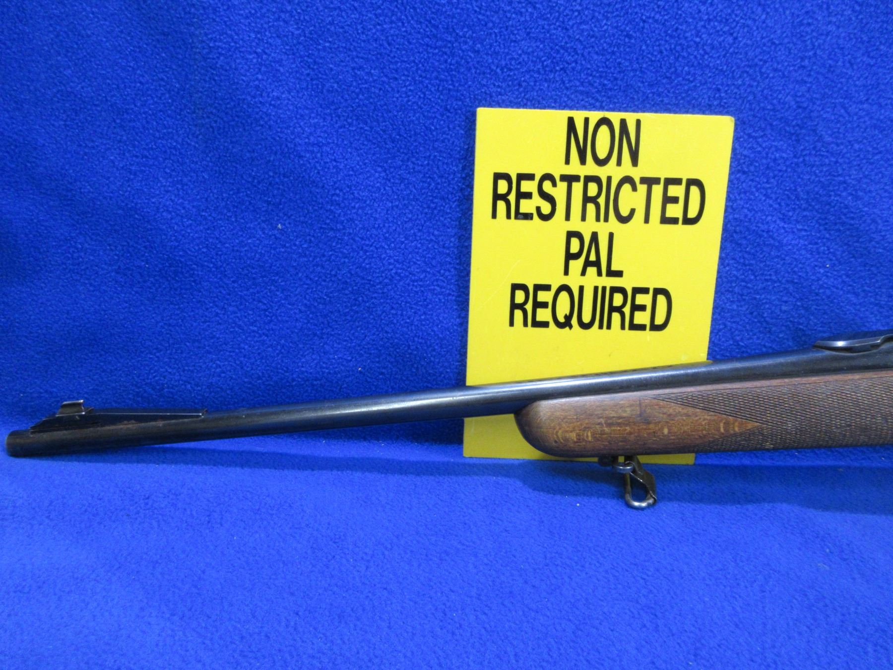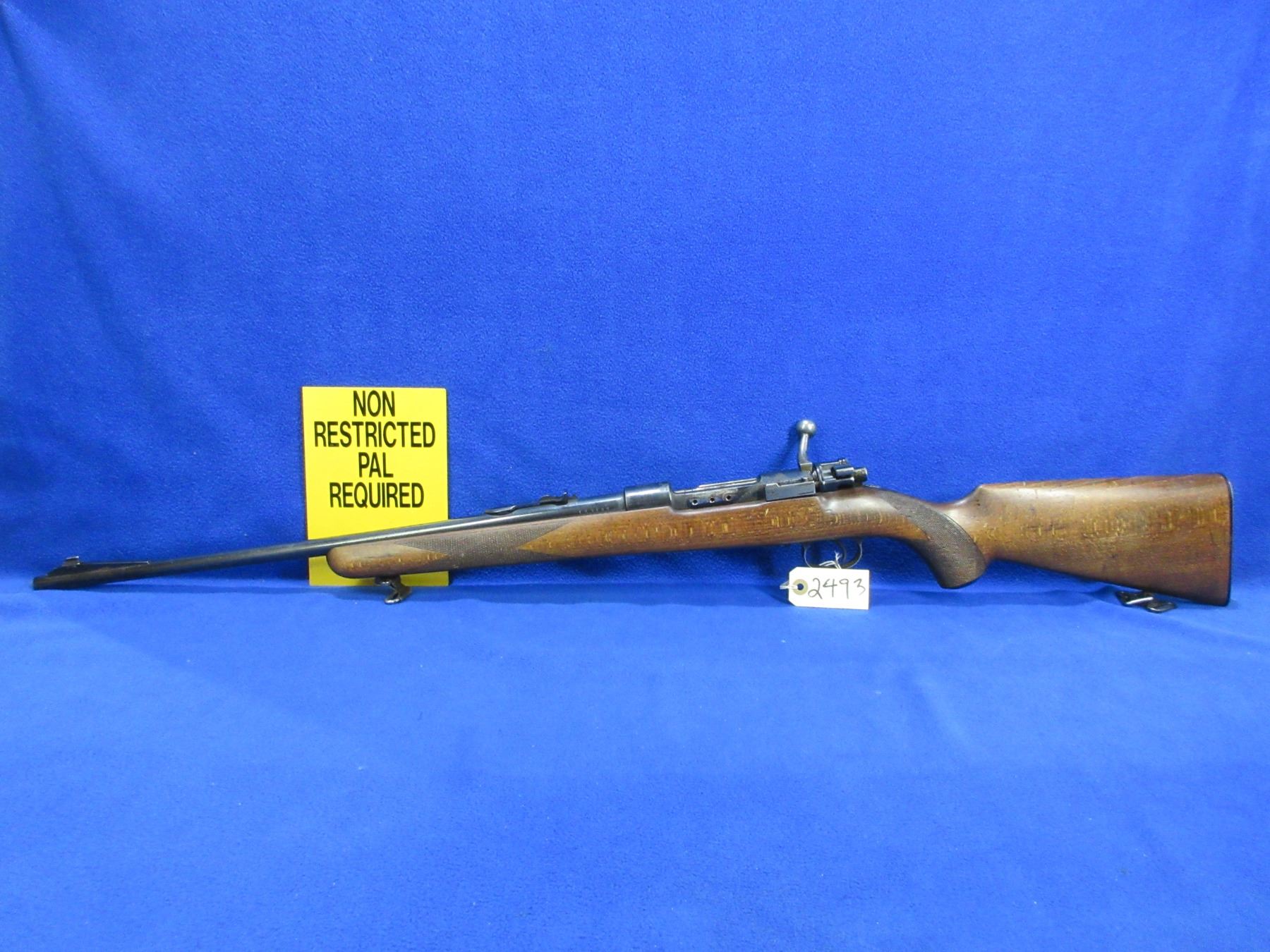 Non-Restricted - Husqvarna M98 in 8X57 JS - This is a bolt action rifle with floor plate magazine, action appears to be in good to very good working order. Barrel is 22", rifling is fair, bluing is good, has both sights, stock is good to very good with usage marks, length of pull is 13 1/2", butt plate good, comes with swivels. Ser # 143169