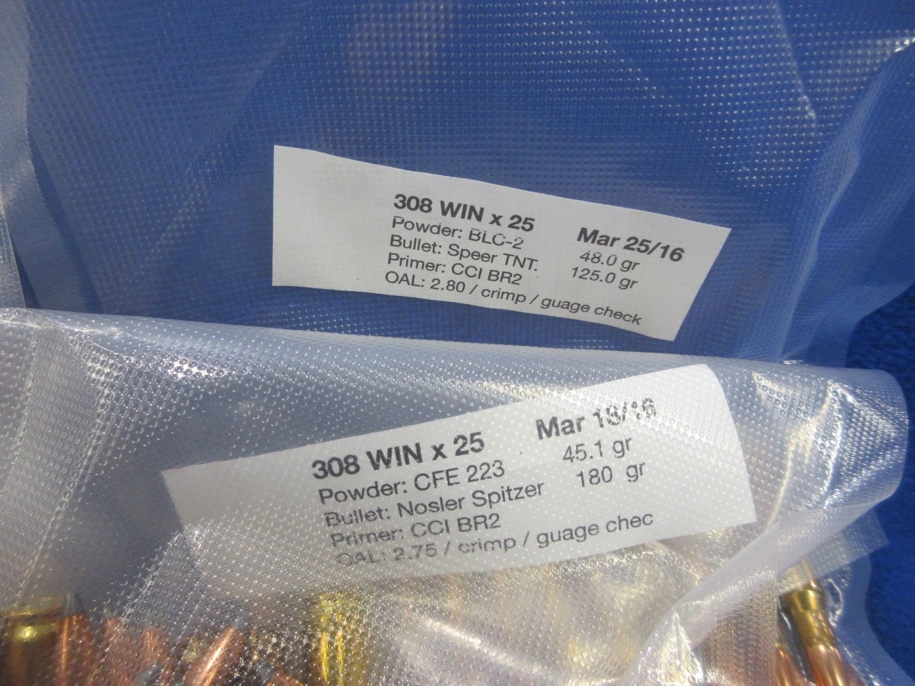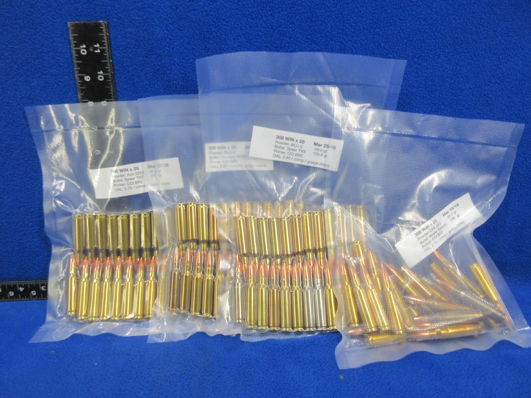 Lot 2503 308 Win. Reloads - 4 Bags of 25 (Pick Up or Ship by UPS Only)