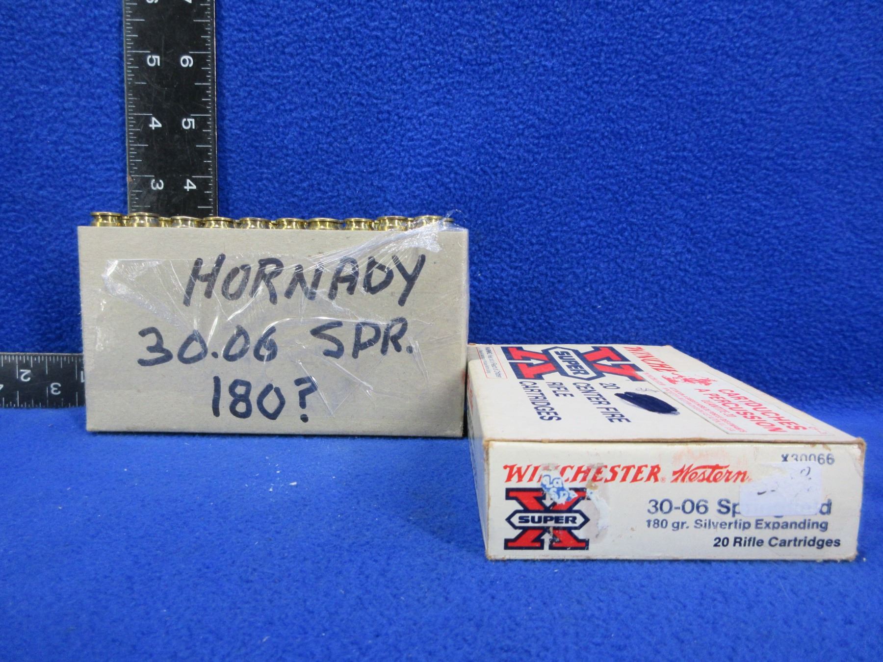 30-06 Sprg Hornady & Winchester (Pick Up or Ship by UPS Only) Cartridges - Box of 20 (Winchester Silvertip 180gr), Box of 20 (Hornady)