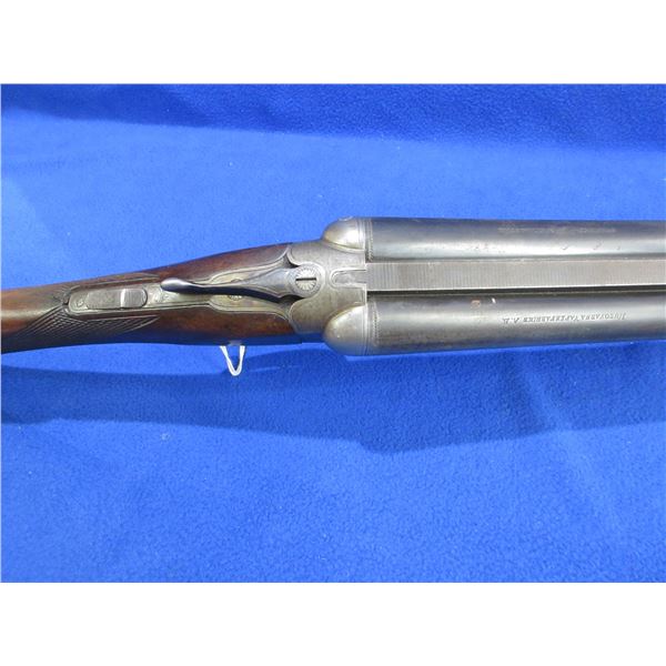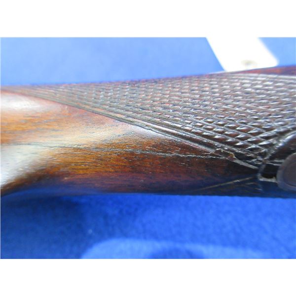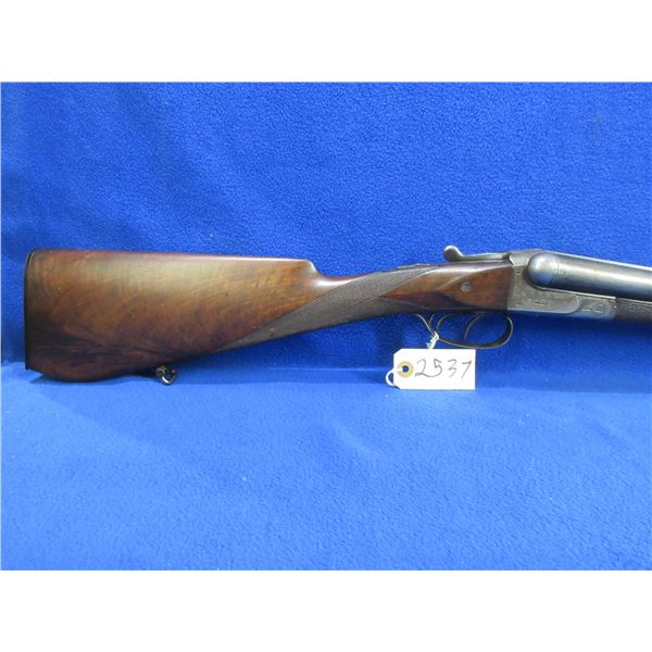Non-Restricted - Husqvarna Model 310 in 12 Ga. 2 3/4" - This is a tip up SXS shotgun, action has a small amount of play to the barrel but appears to be in good working order. Barrels are 27 1/2", bores are good to very good, bluing is good but turning grey, has bead front sight, stock has a hairline crack in the wrist area on top and a large chip in the toe, forearm is good to very good with usage marks, length of pull is 13 3/4", butt plate is broken, comes with swivels. Ser # 203087