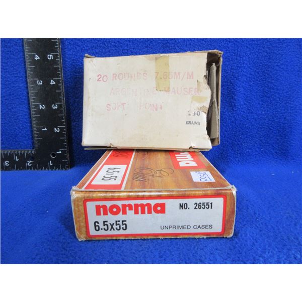 7.65MM Mauser & 6.5X55 Cartridges (Pick Up or Ship by UPS Only) - Box of 12 (7.65MM SP Argentine Mauser), Box of 5 + 15 Brass (6.5X55 Reloads) - Sold as Components