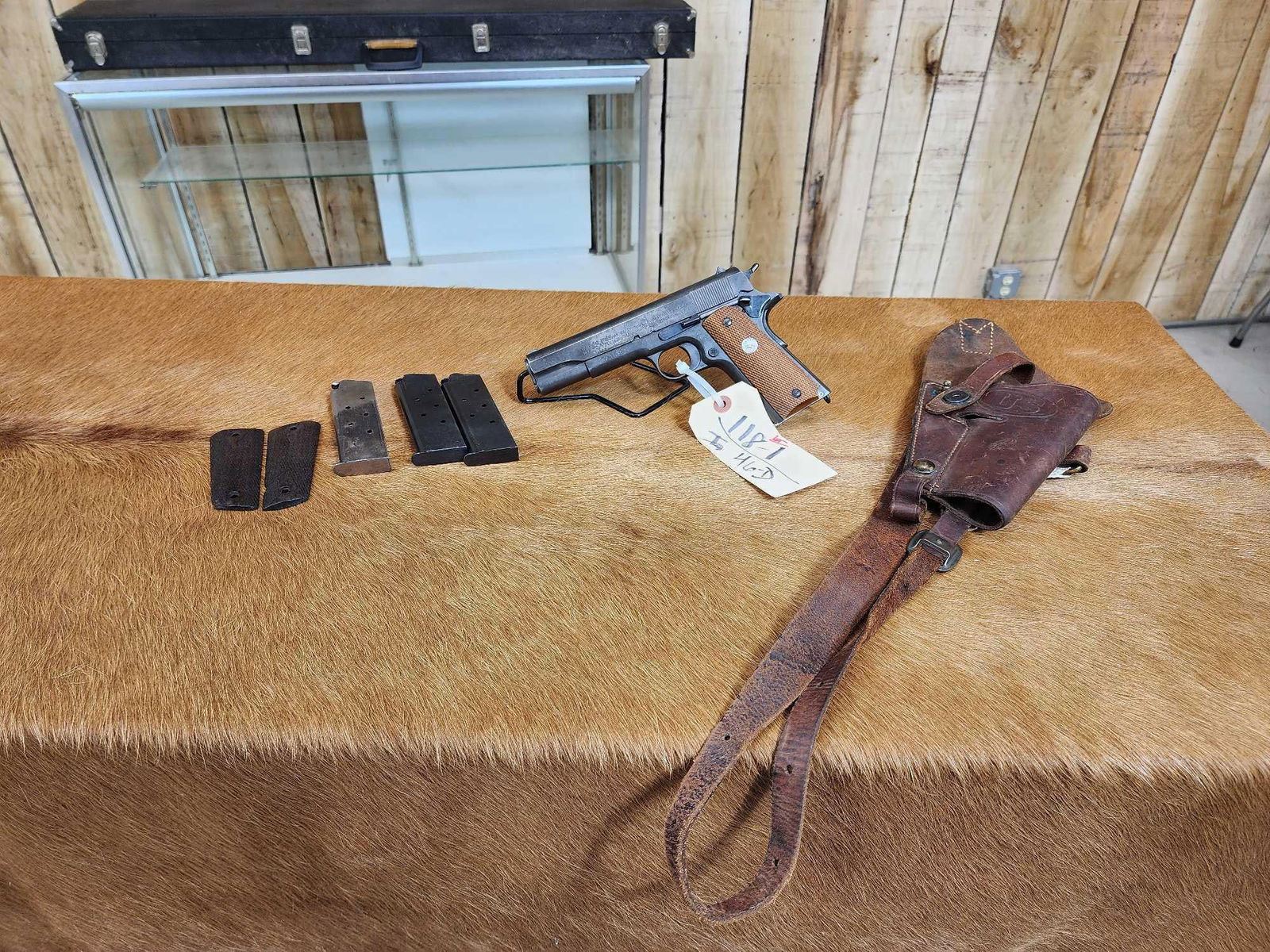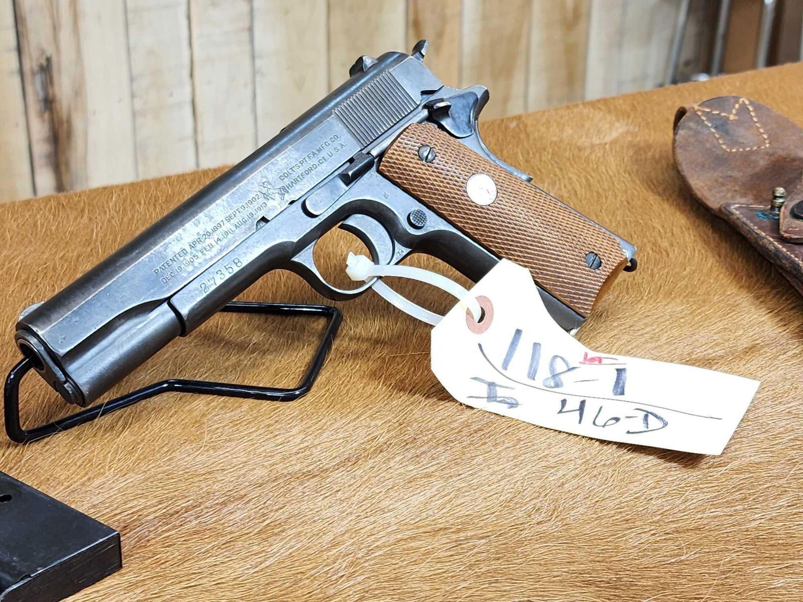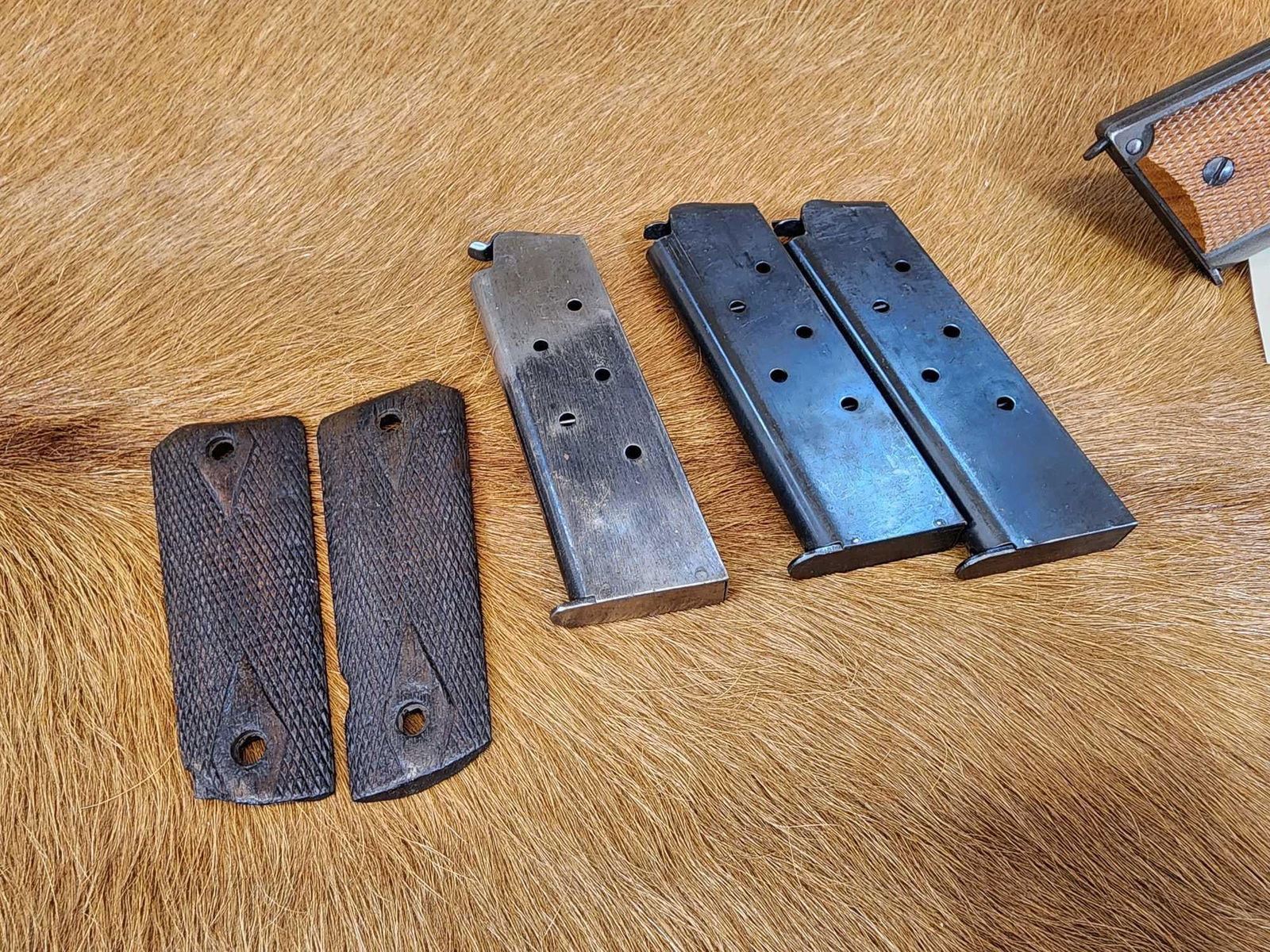 118.1 Great condition for its age shiny bore good rifling crisp action comes with period correct shoulder holster marked US along with 3 extra mags & original grips SN 27358